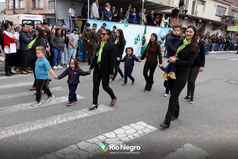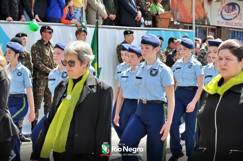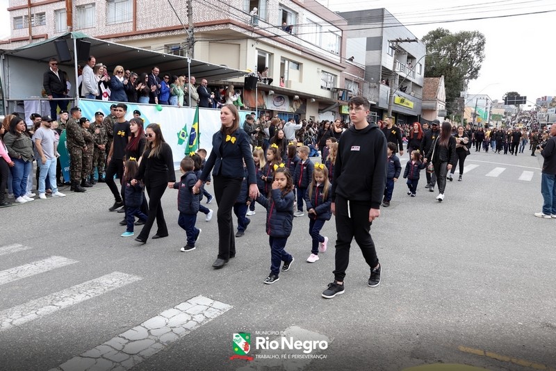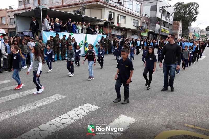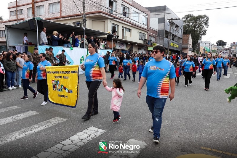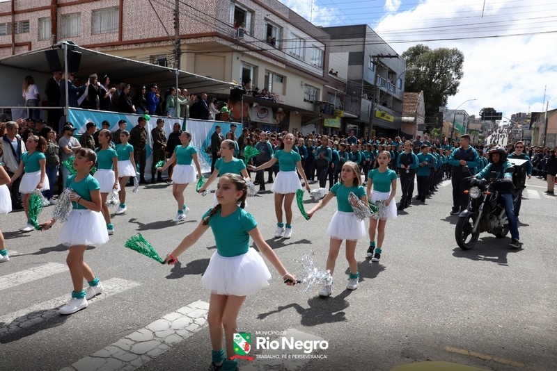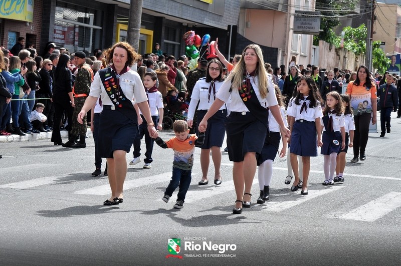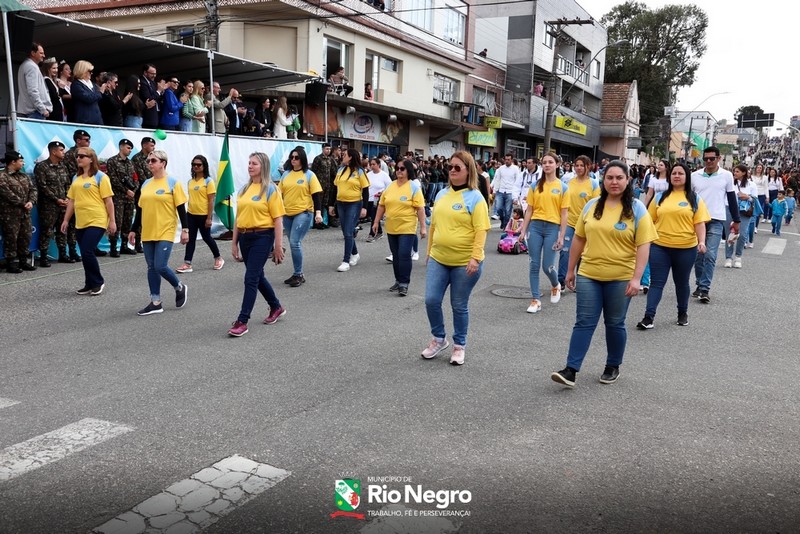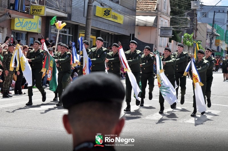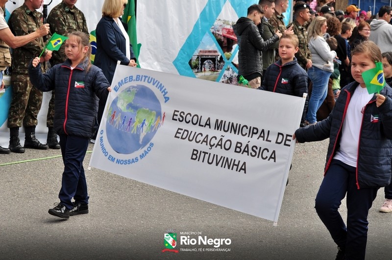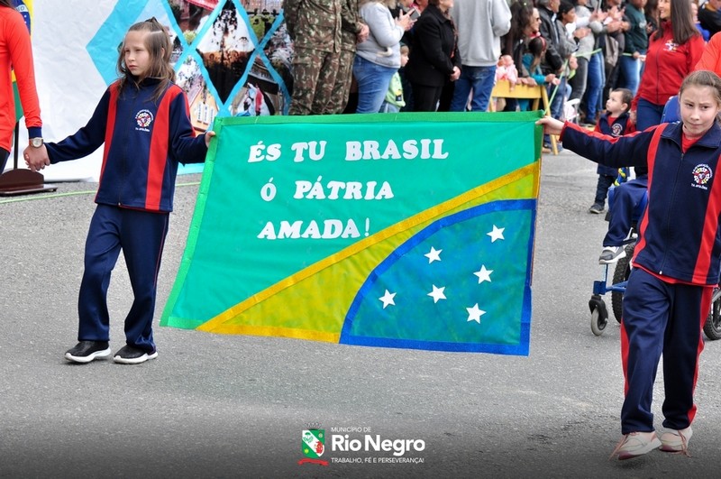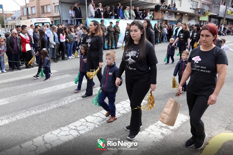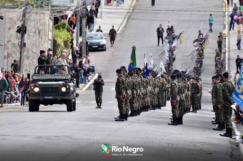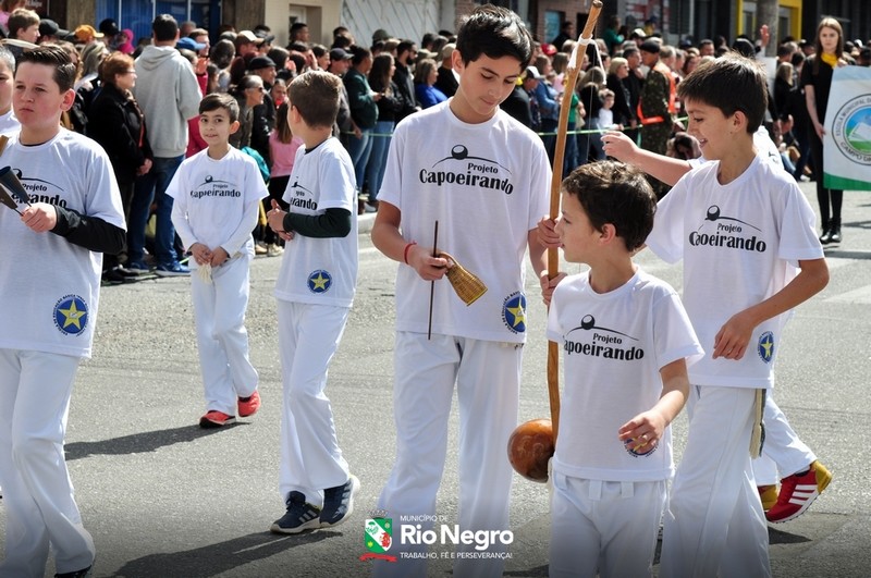 O desfile ocorreu na Rua Dr. Vicente Machado, em Rio Negro, com a participação de diversas escolas e entidades, inclusive de outros municÃpios da região. O evento foi organizado pela Prefeitura de Rio Negro, através da Secretaria Municipal de Educação e com o importante apoio do 5º Regimento de Carros de Combate.