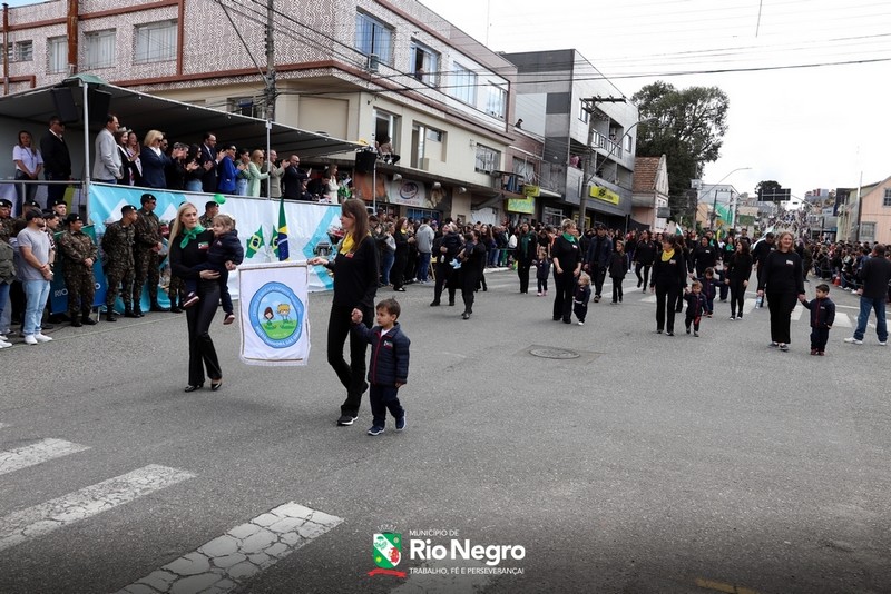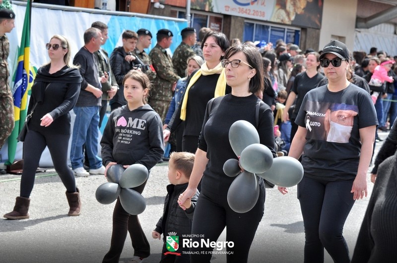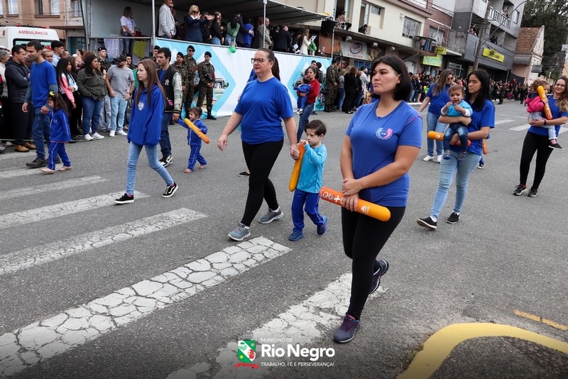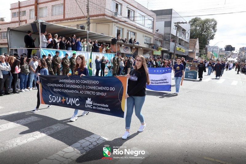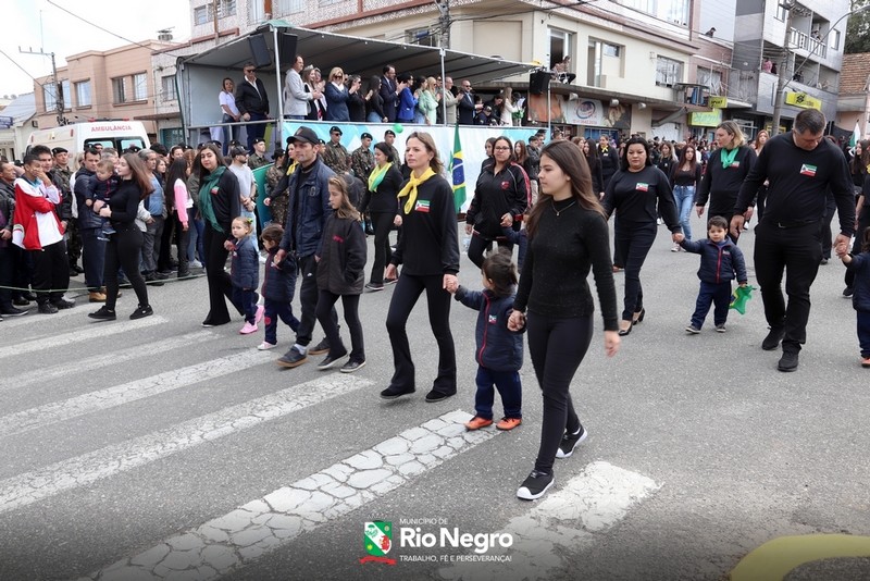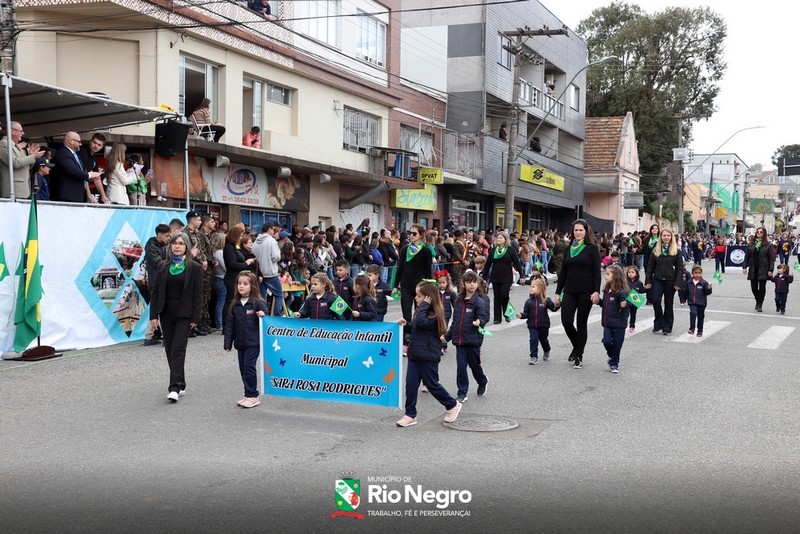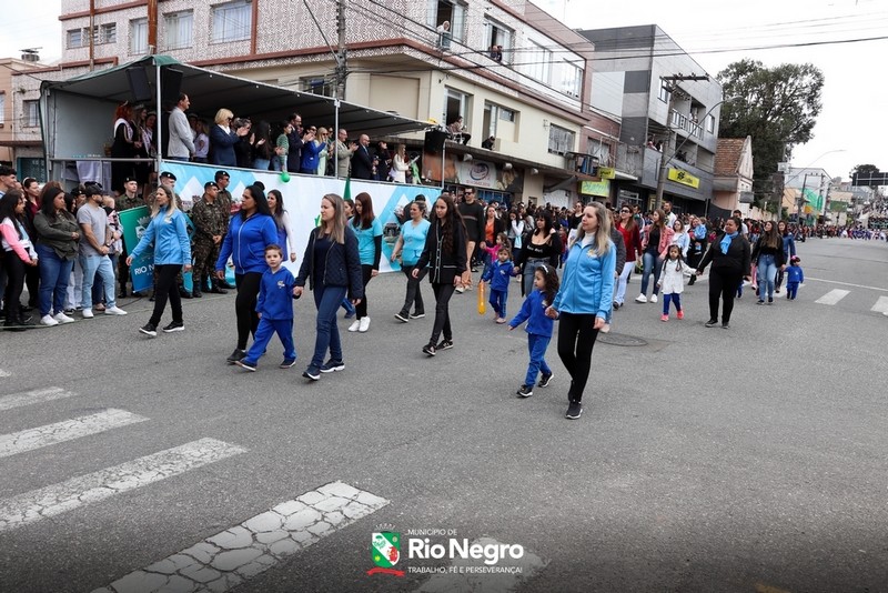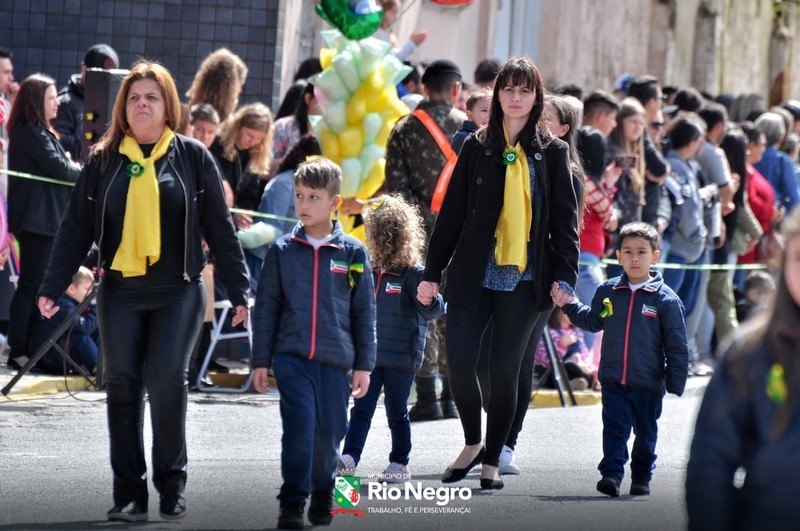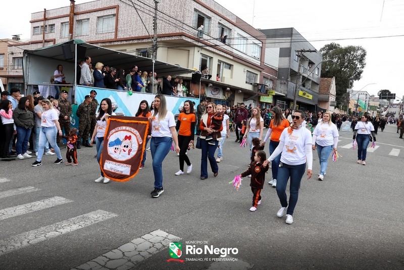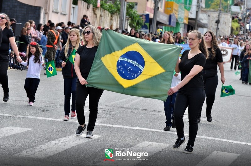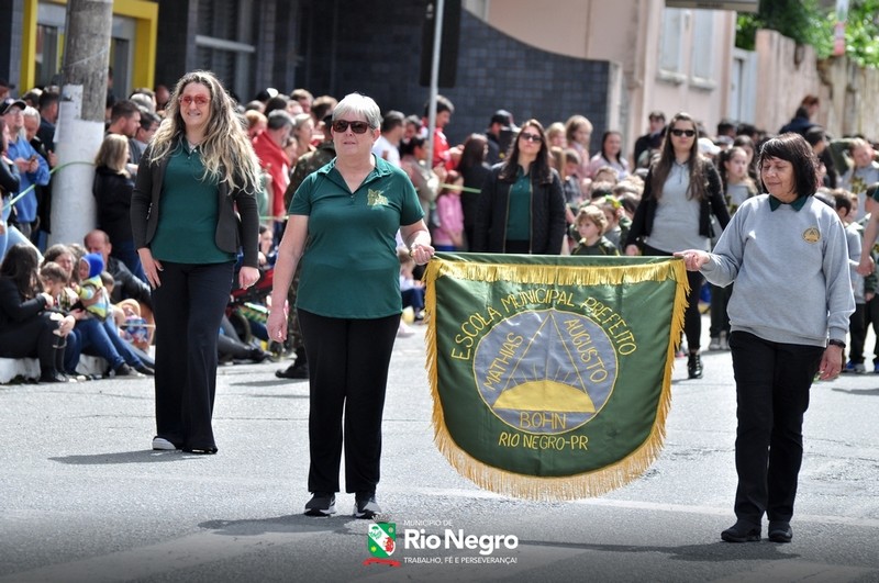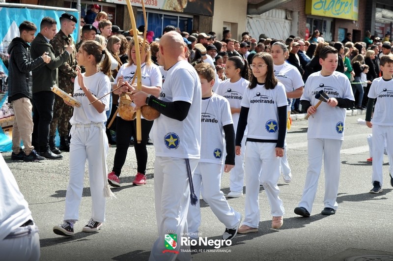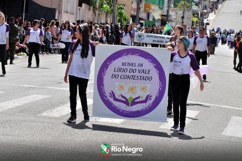 O desfile ocorreu na Rua Dr. Vicente Machado, em Rio Negro, com a participação de diversas escolas e entidades, inclusive de outros municÃpios da região. O evento foi organizado pela Prefeitura de Rio Negro, através da Secretaria Municipal de Educação e com o importante apoio do 5º Regimento de Carros de Combate.