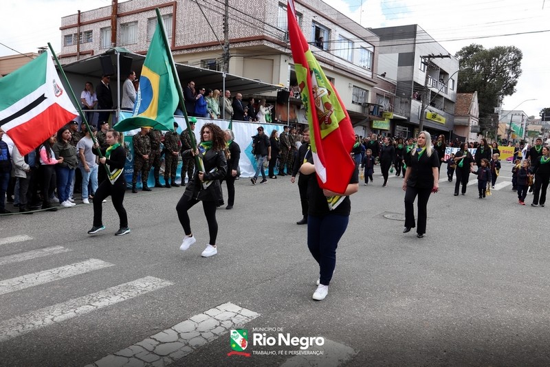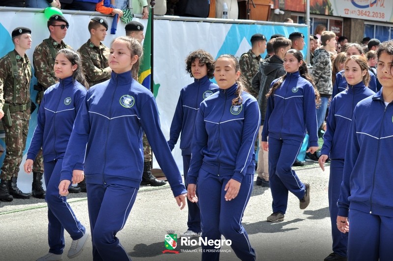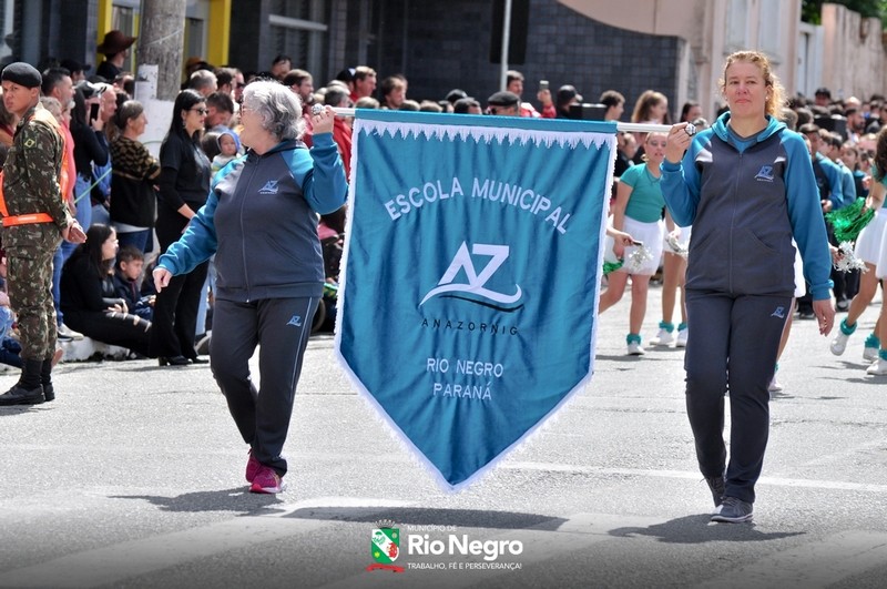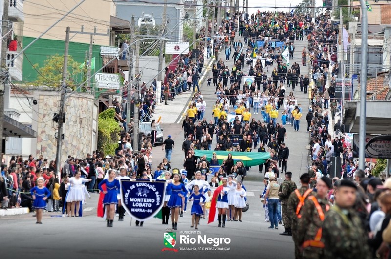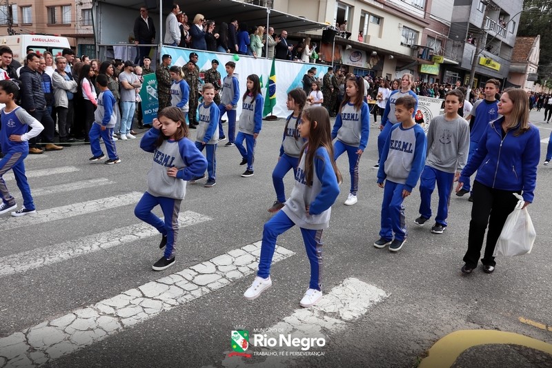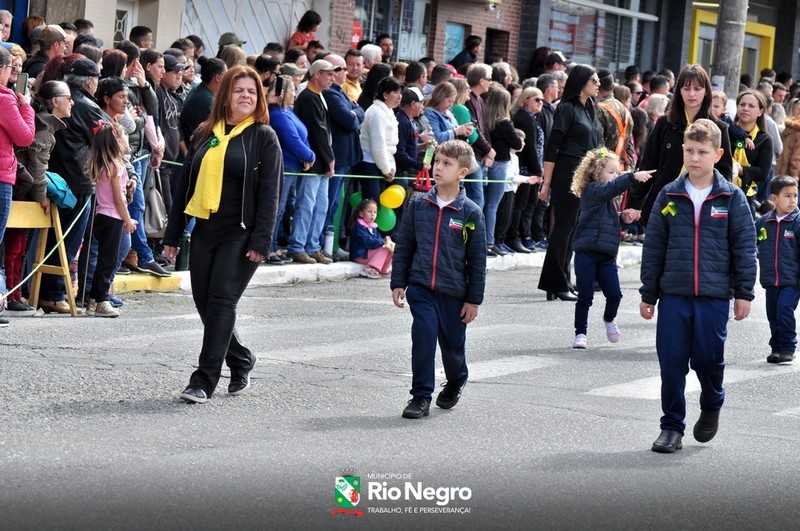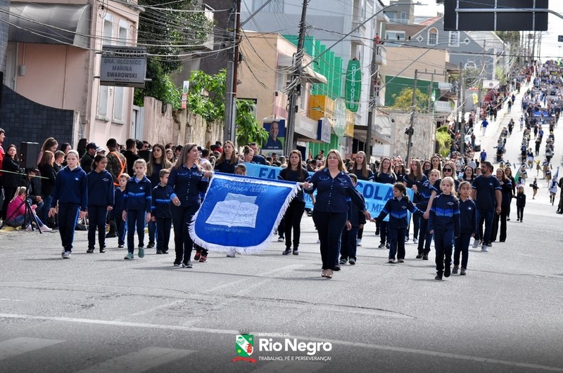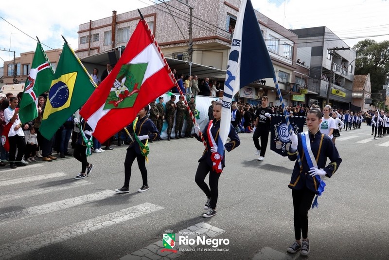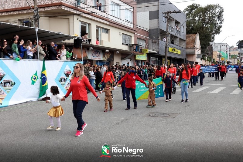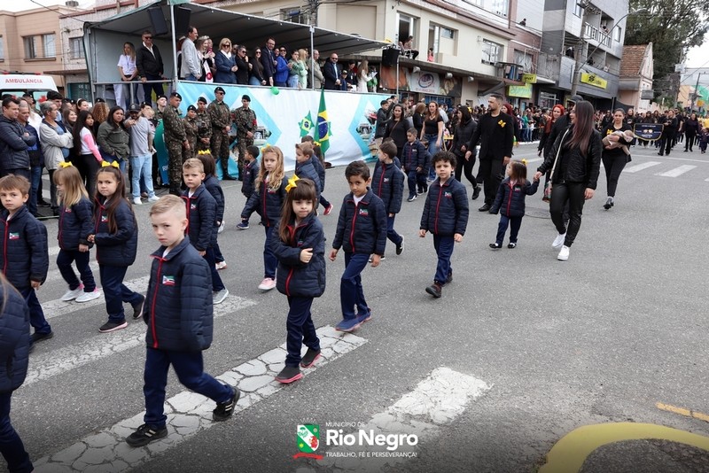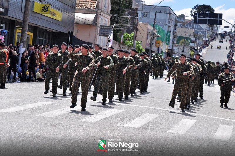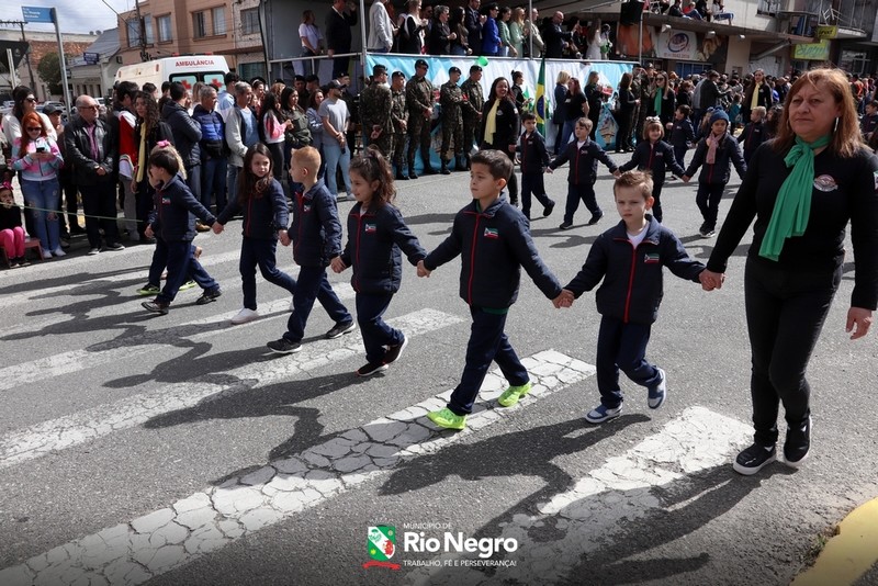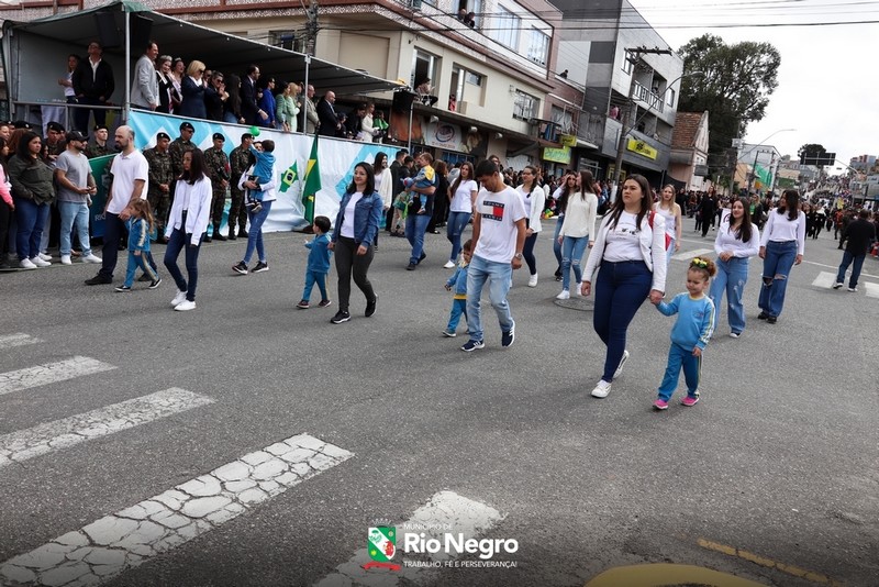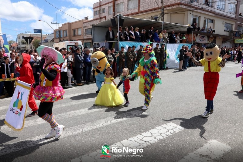 O desfile ocorreu na Rua Dr. Vicente Machado, em Rio Negro, com a participação de diversas escolas e entidades, inclusive de outros municÃpios da região. O evento foi organizado pela Prefeitura de Rio Negro, através da Secretaria Municipal de Educação e com o importante apoio do 5º Regimento de Carros de Combate.