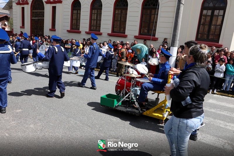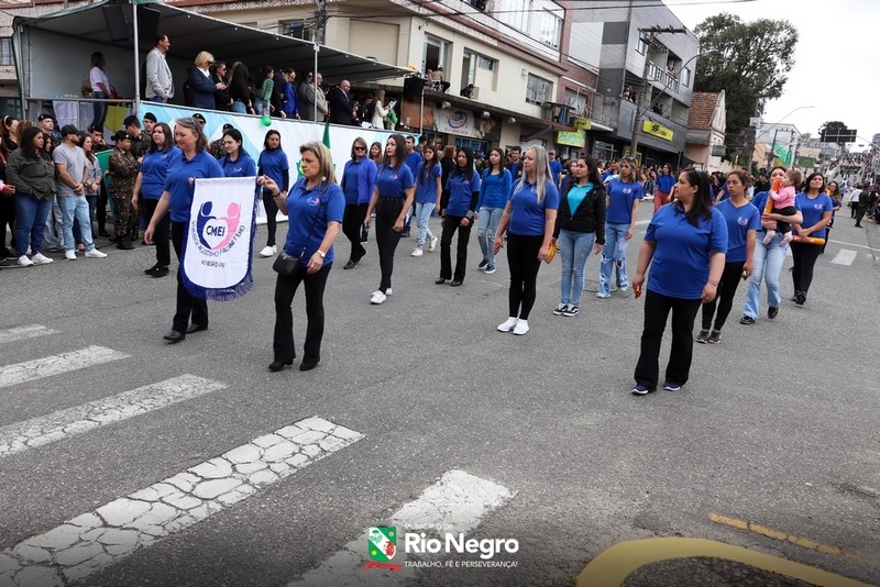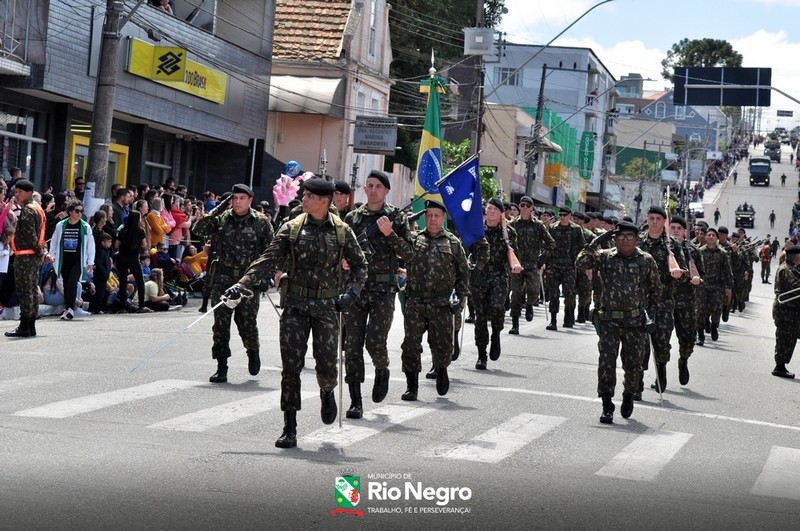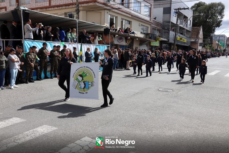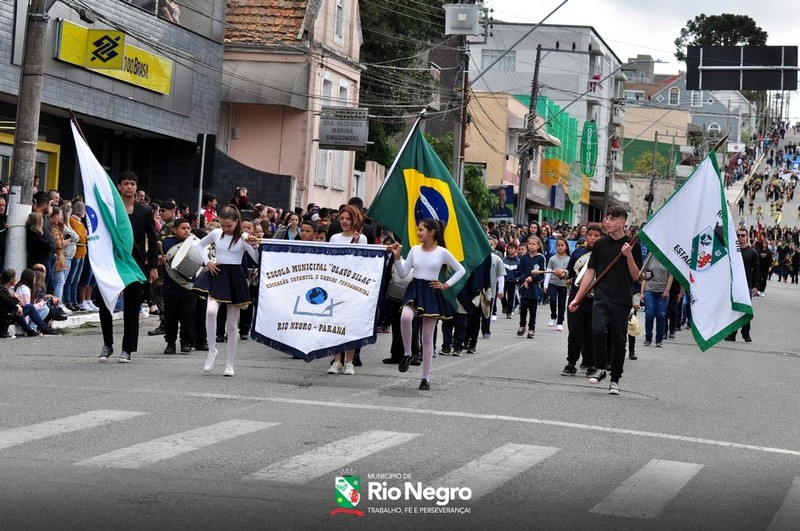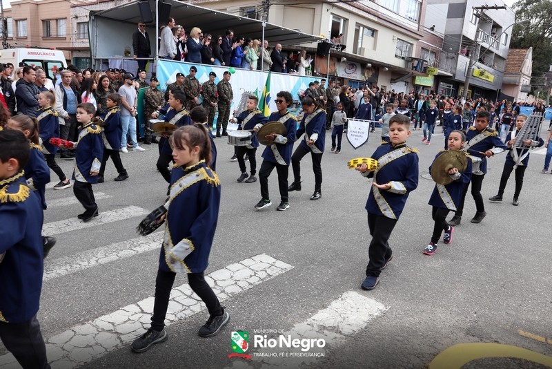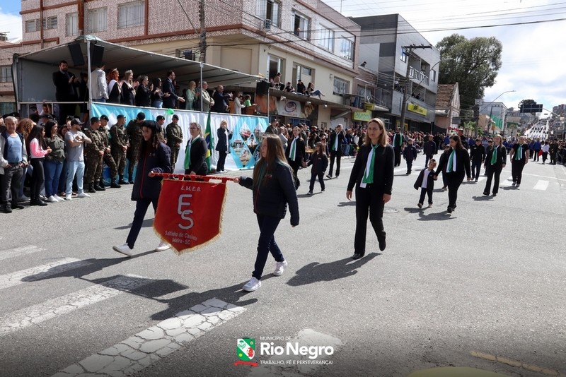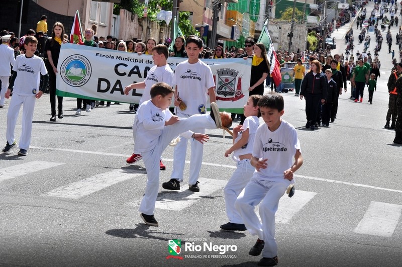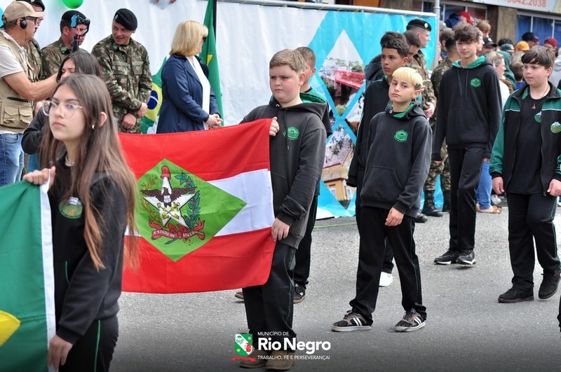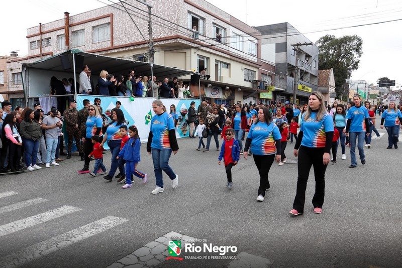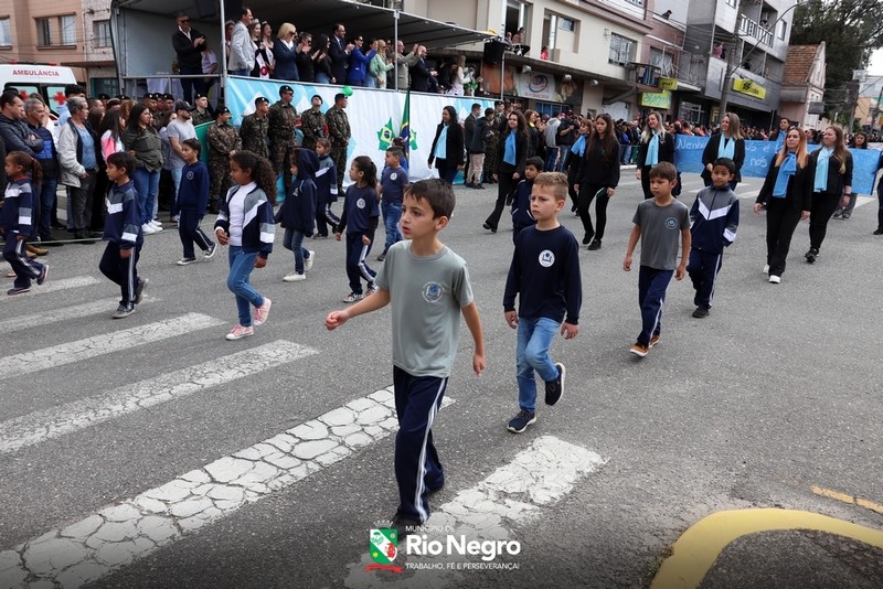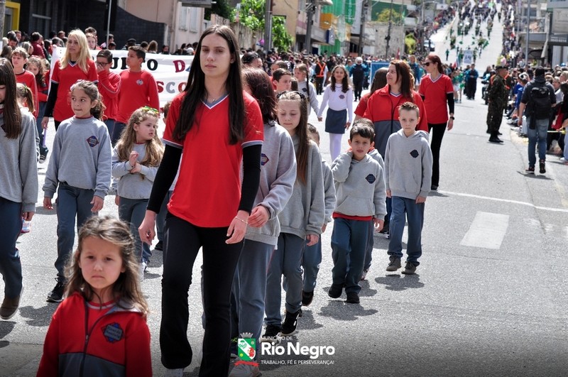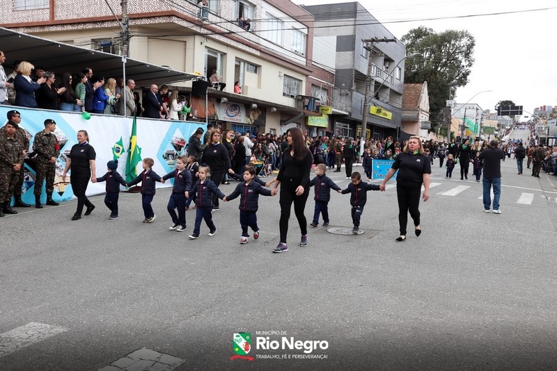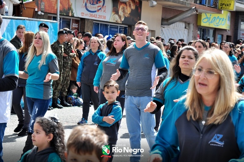 O desfile ocorreu na Rua Dr. Vicente Machado, em Rio Negro, com a participação de diversas escolas e entidades, inclusive de outros municÃpios da região. O evento foi organizado pela Prefeitura de Rio Negro, através da Secretaria Municipal de Educação e com o importante apoio do 5º Regimento de Carros de Combate.