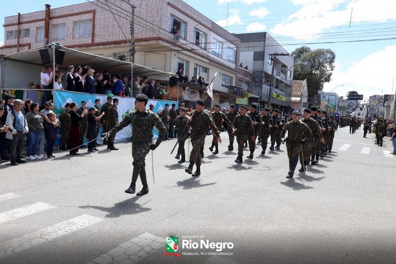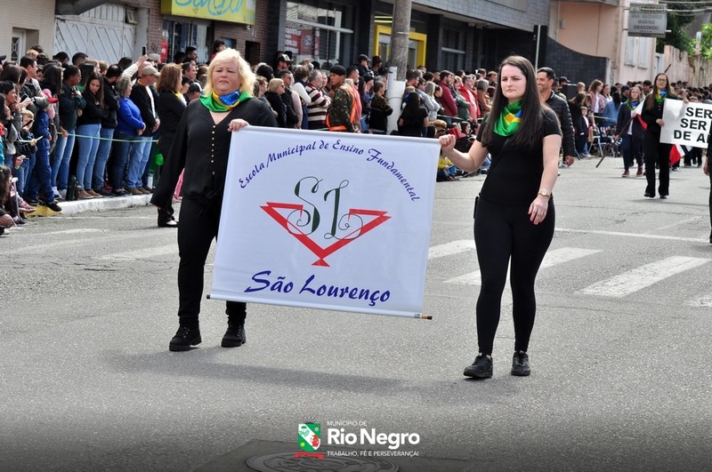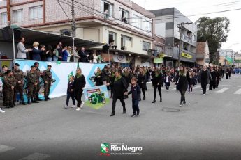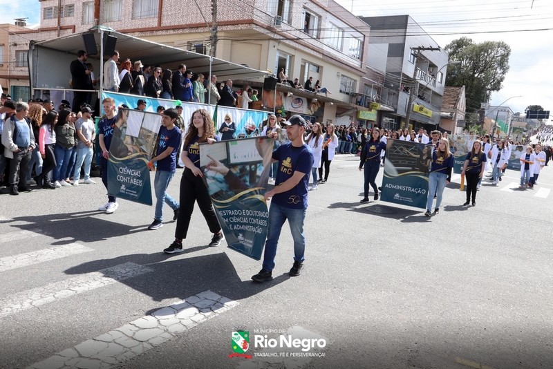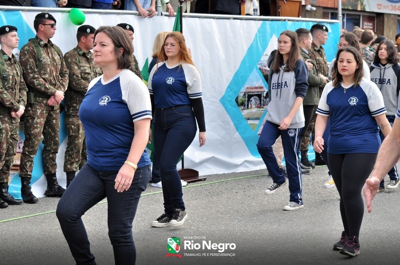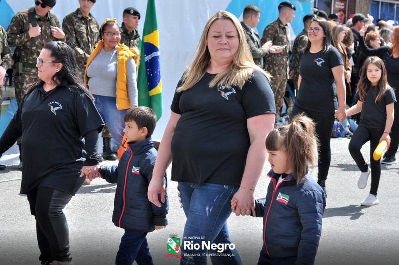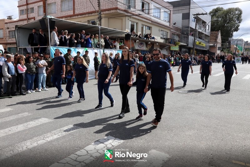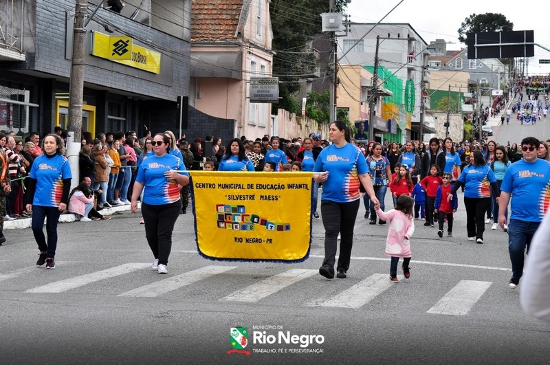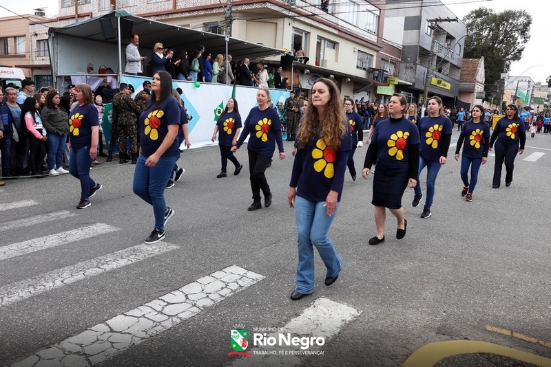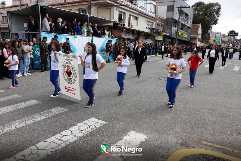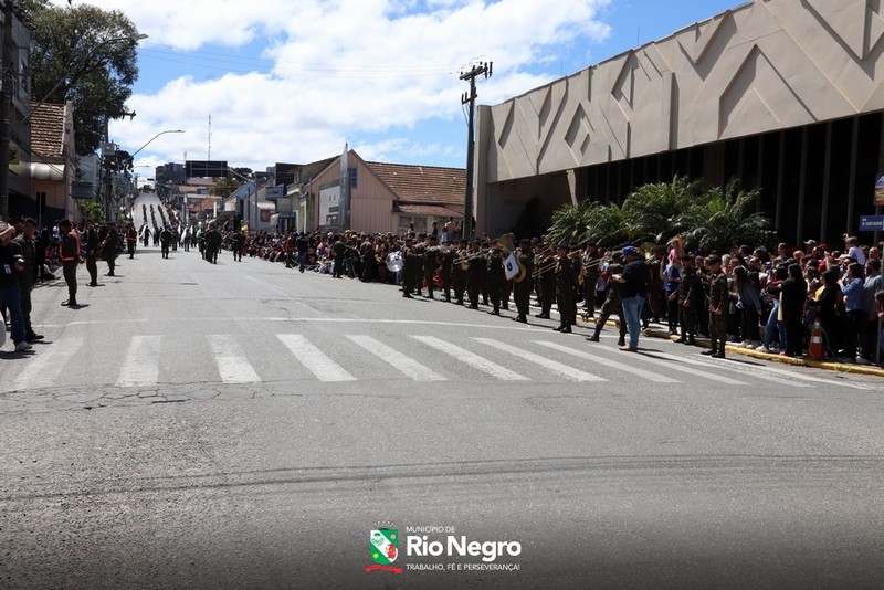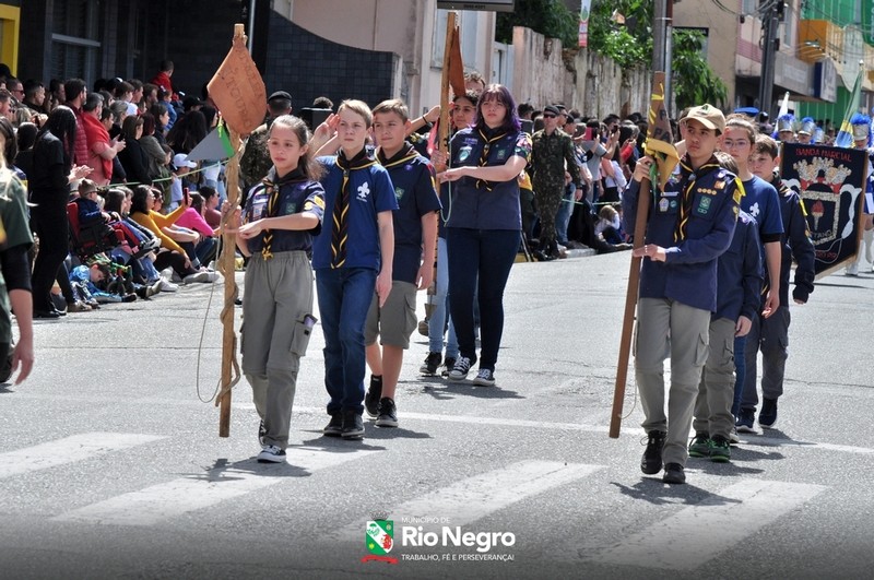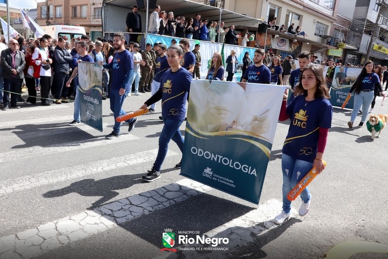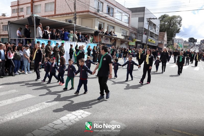 O desfile ocorreu na Rua Dr. Vicente Machado, em Rio Negro, com a participação de diversas escolas e entidades, inclusive de outros municÃpios da região. O evento foi organizado pela Prefeitura de Rio Negro, através da Secretaria Municipal de Educação e com o importante apoio do 5º Regimento de Carros de Combate.