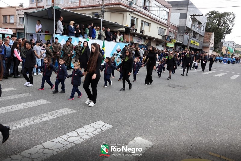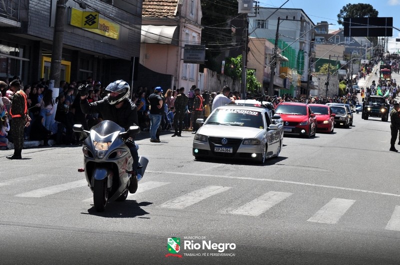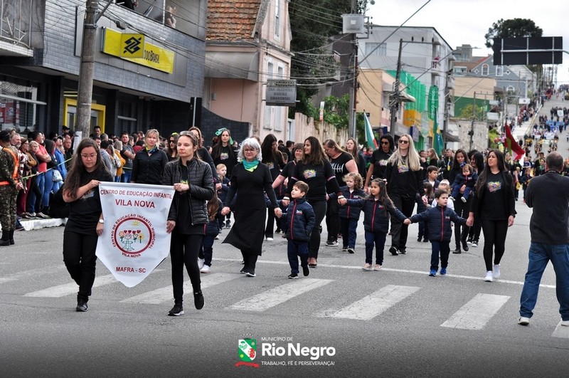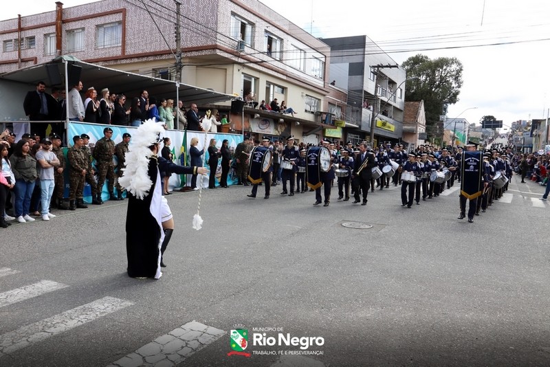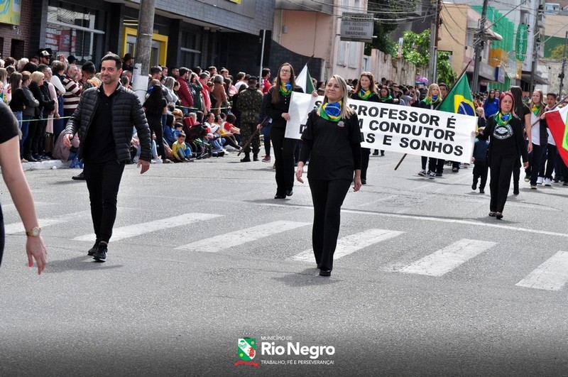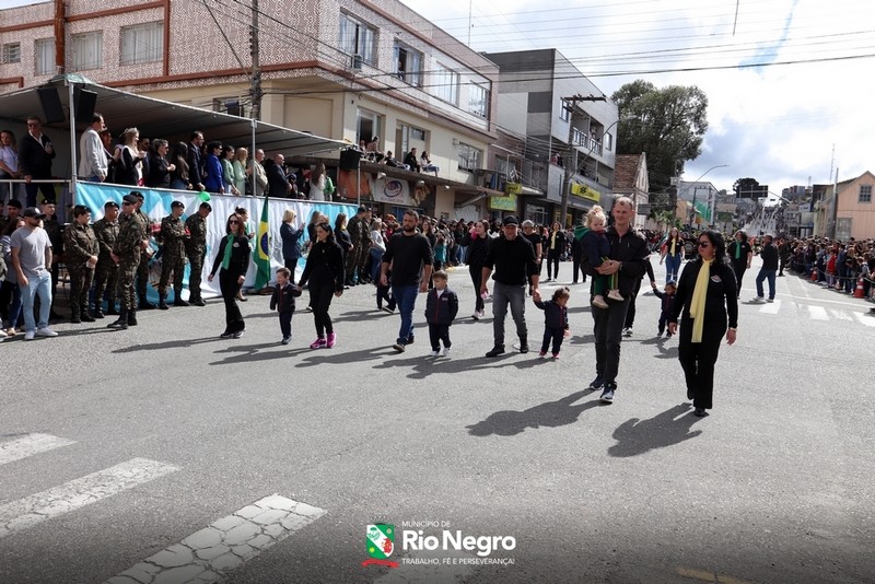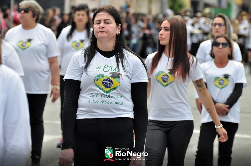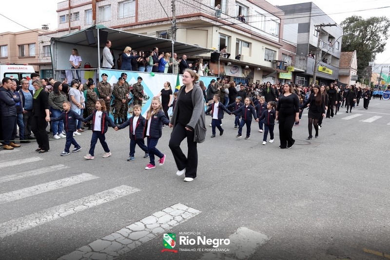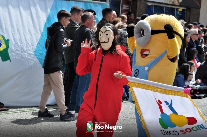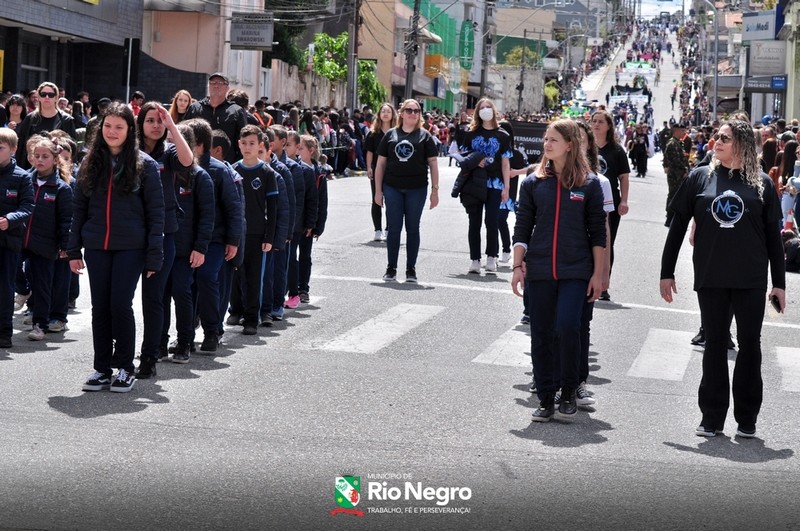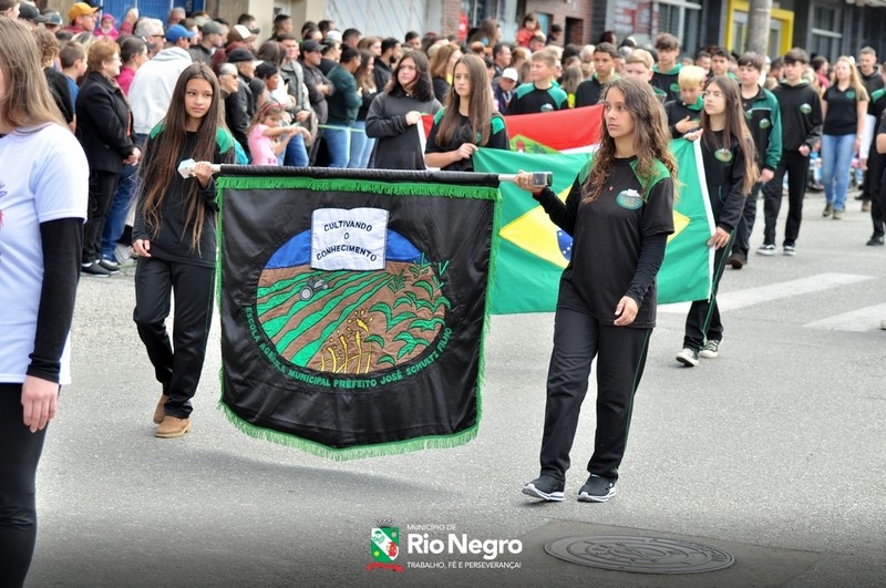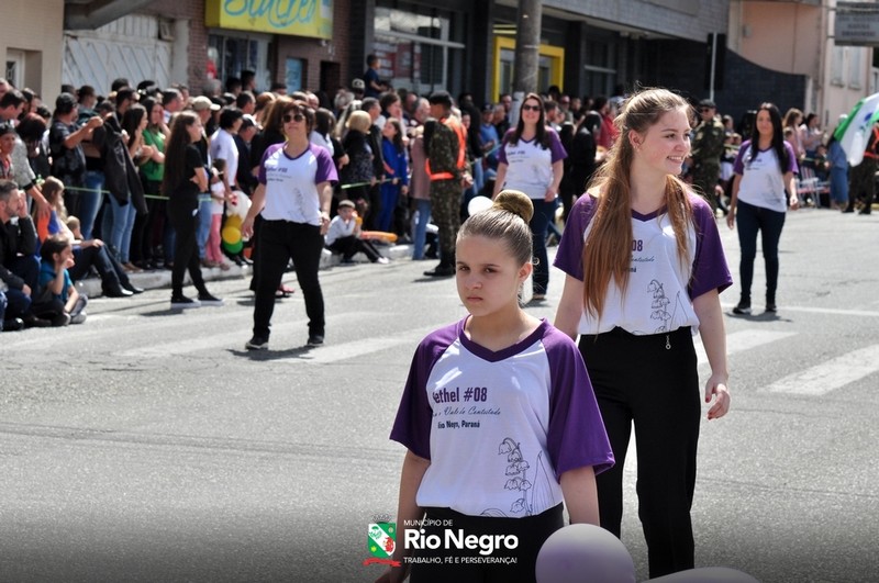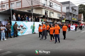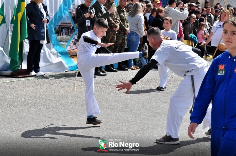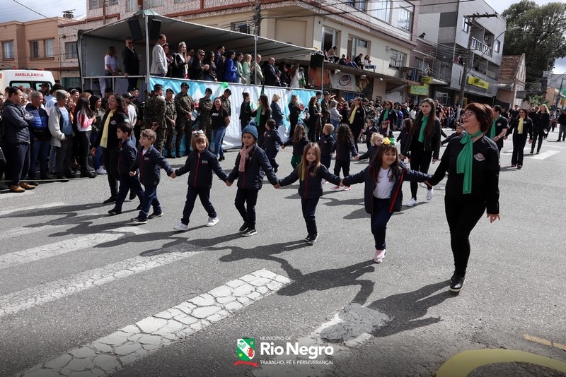 O desfile ocorreu na Rua Dr. Vicente Machado, em Rio Negro, com a participação de diversas escolas e entidades, inclusive de outros municÃpios da região. O evento foi organizado pela Prefeitura de Rio Negro, através da Secretaria Municipal de Educação e com o importante apoio do 5º Regimento de Carros de Combate.