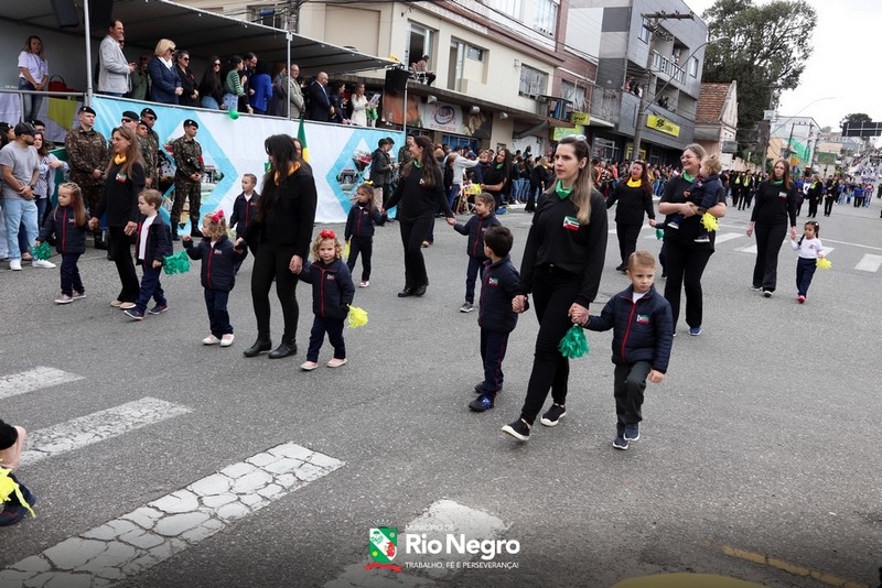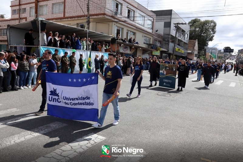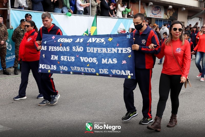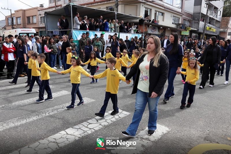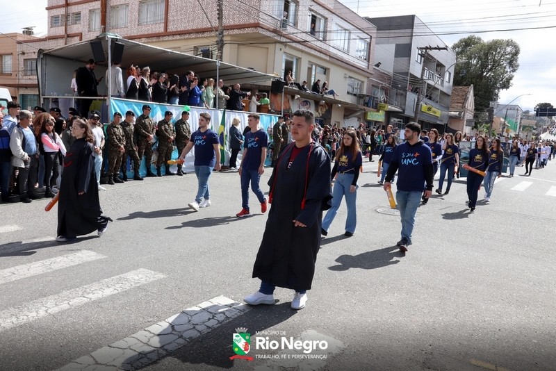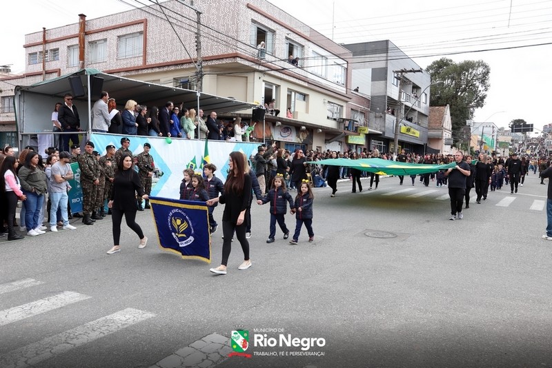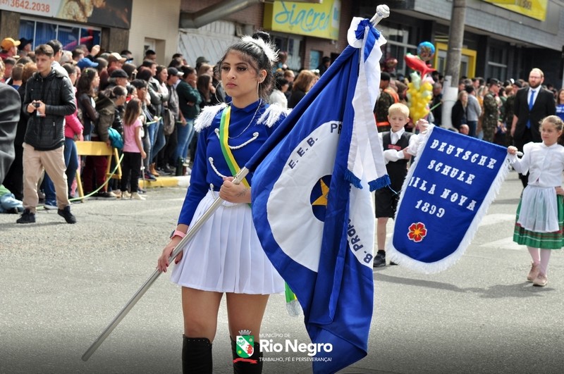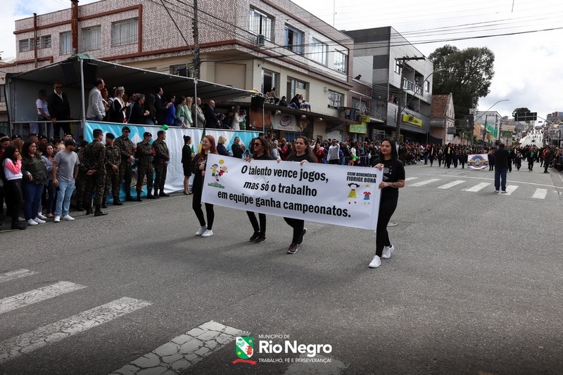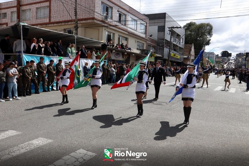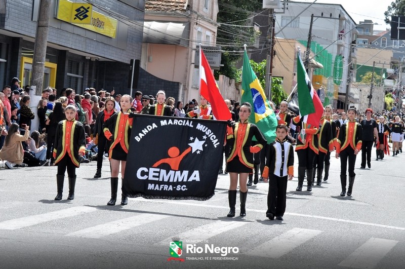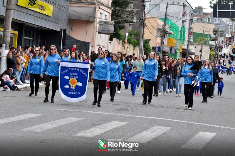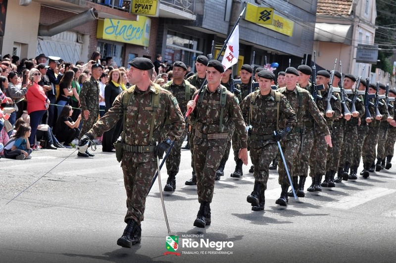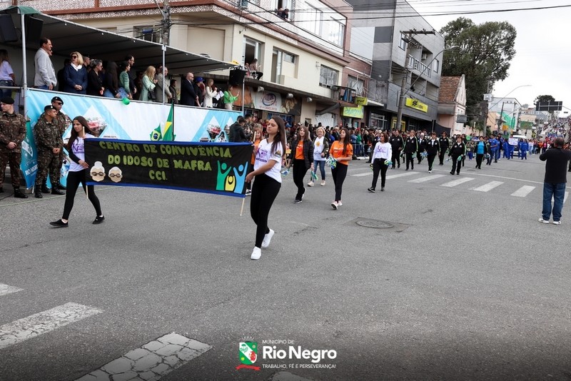 O desfile ocorreu na Rua Dr. Vicente Machado, em Rio Negro, com a participação de diversas escolas e entidades, inclusive de outros municÃpios da região. O evento foi organizado pela Prefeitura de Rio Negro, através da Secretaria Municipal de Educação e com o importante apoio do 5º Regimento de Carros de Combate.