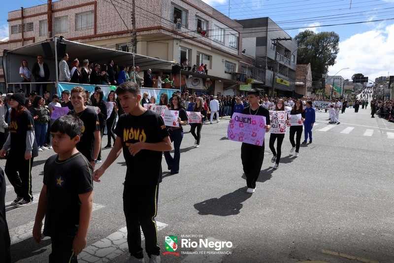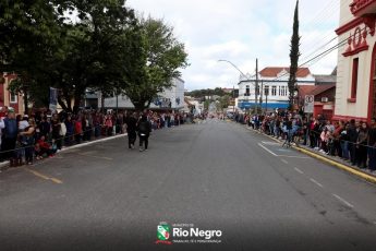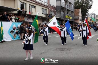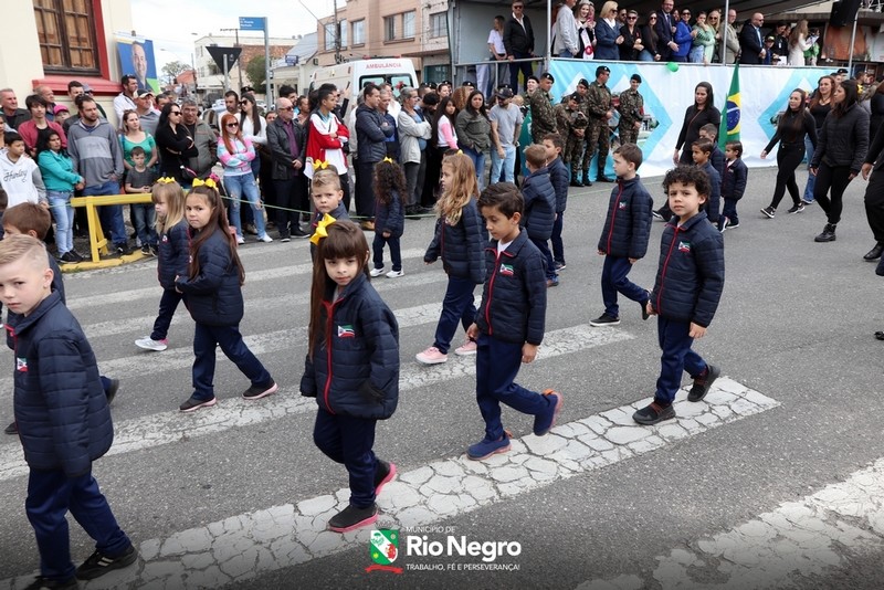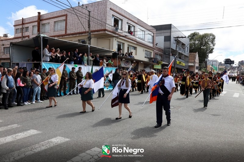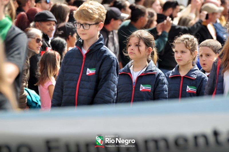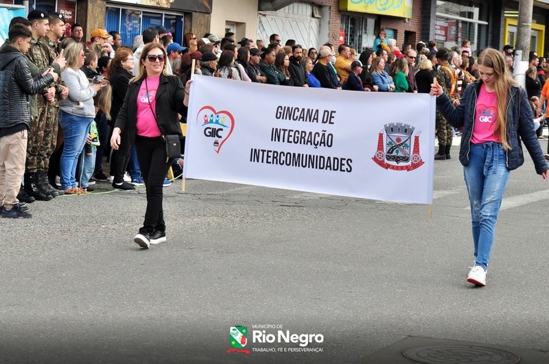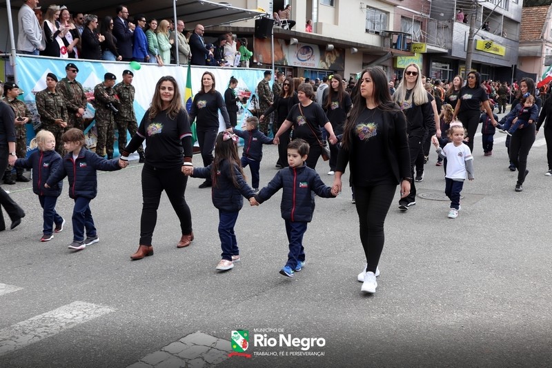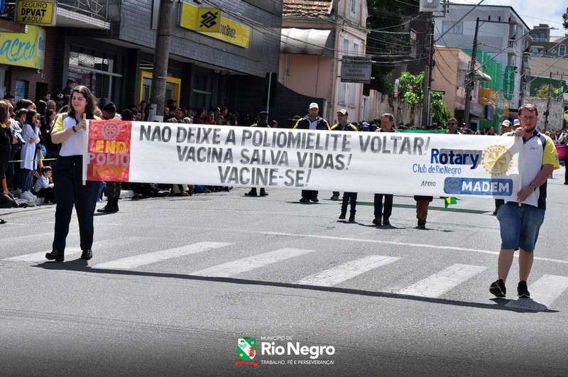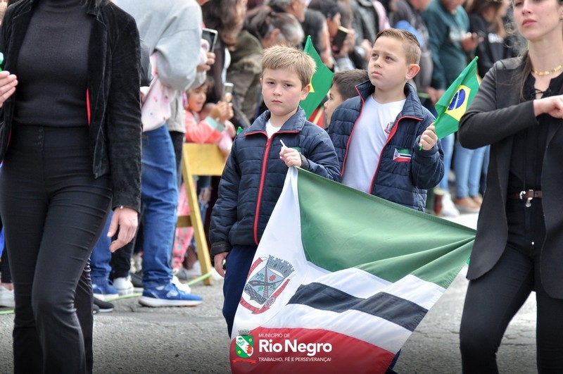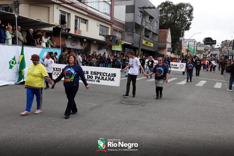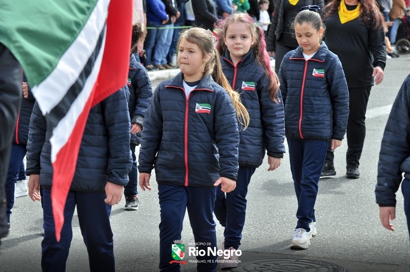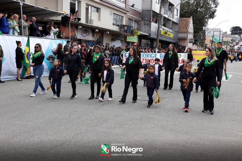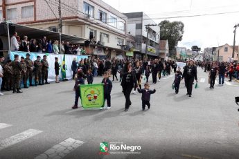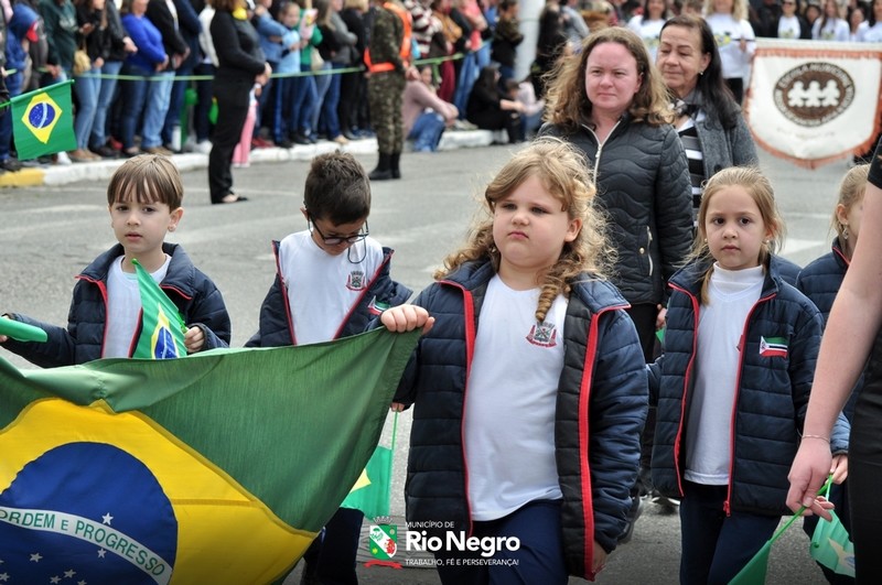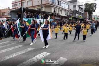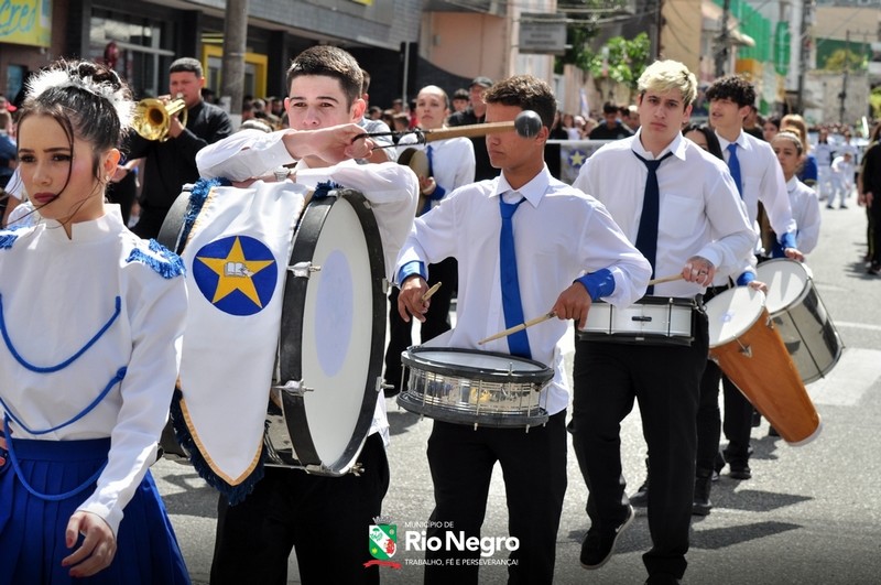 O desfile ocorreu na Rua Dr. Vicente Machado, em Rio Negro, com a participação de diversas escolas e entidades, inclusive de outros municÃpios da região. O evento foi organizado pela Prefeitura de Rio Negro, através da Secretaria Municipal de Educação e com o importante apoio do 5º Regimento de Carros de Combate.