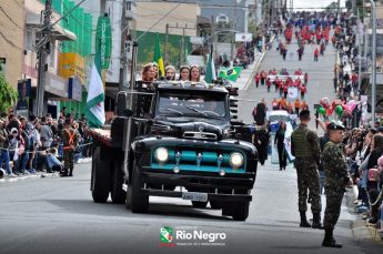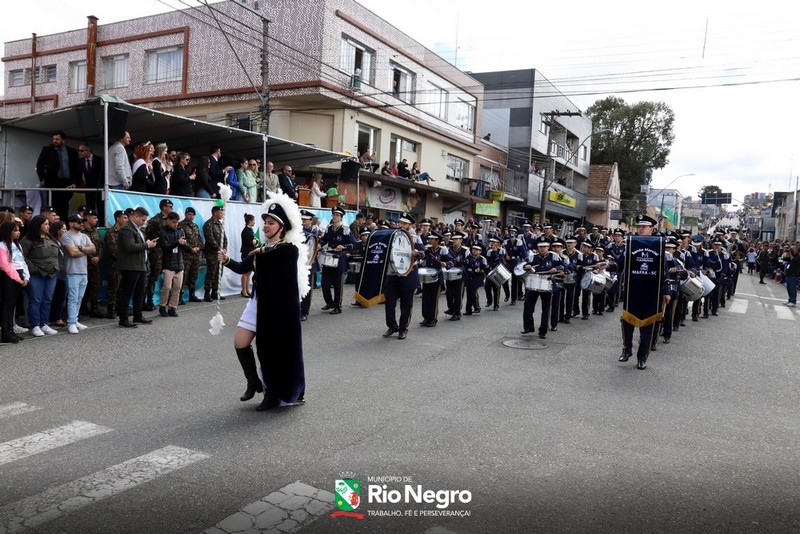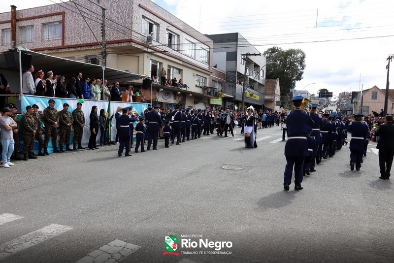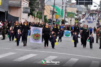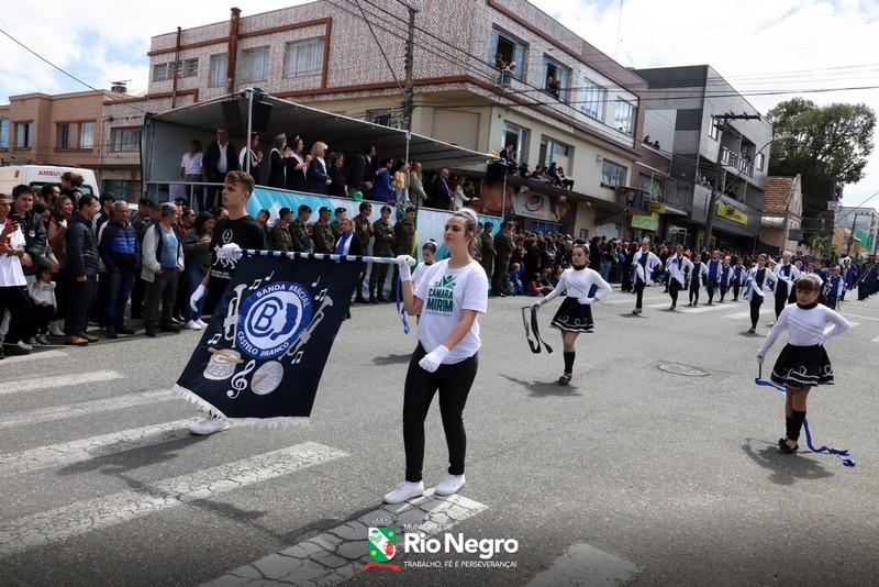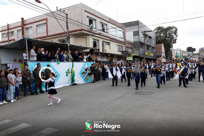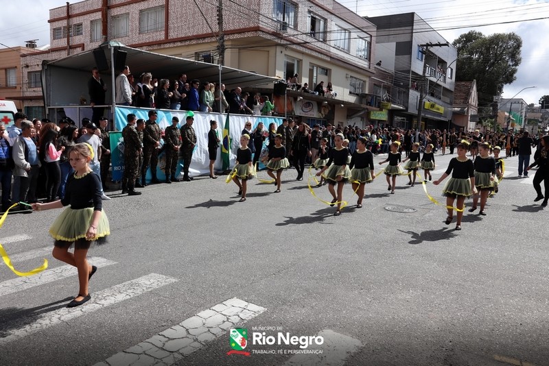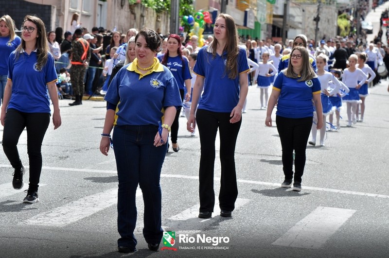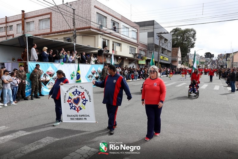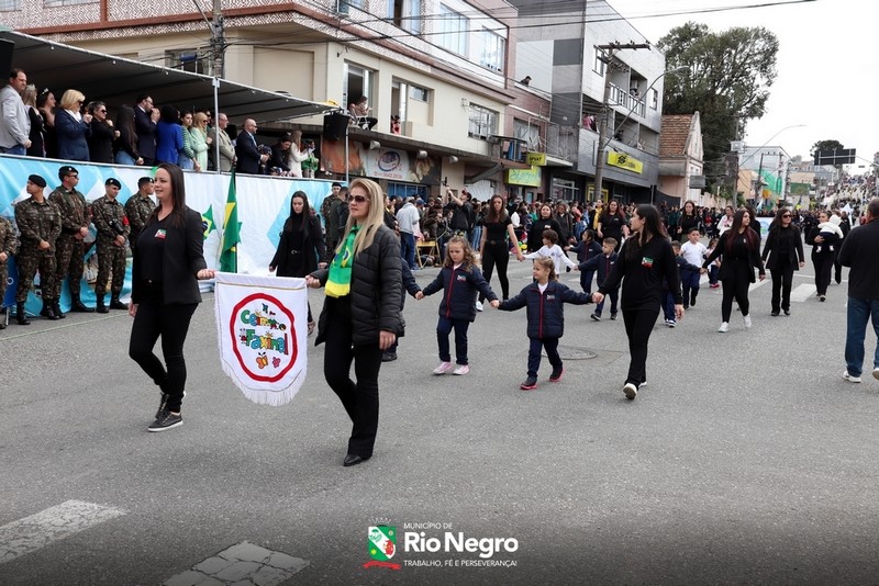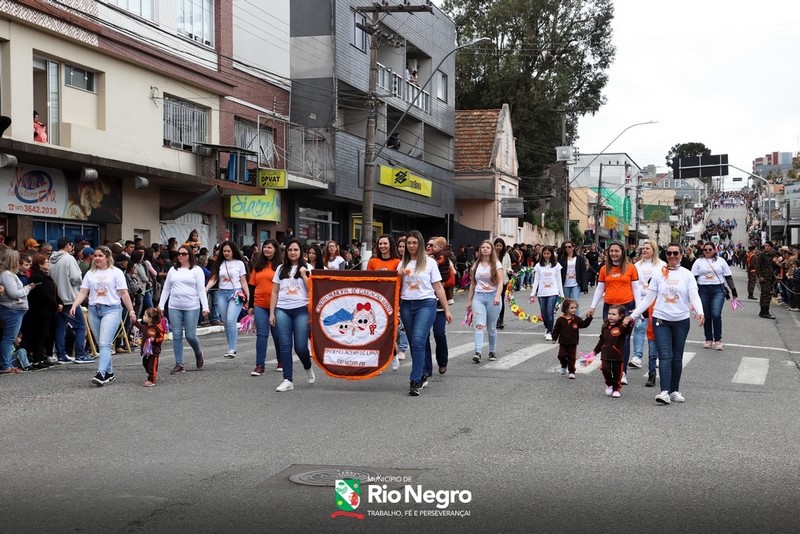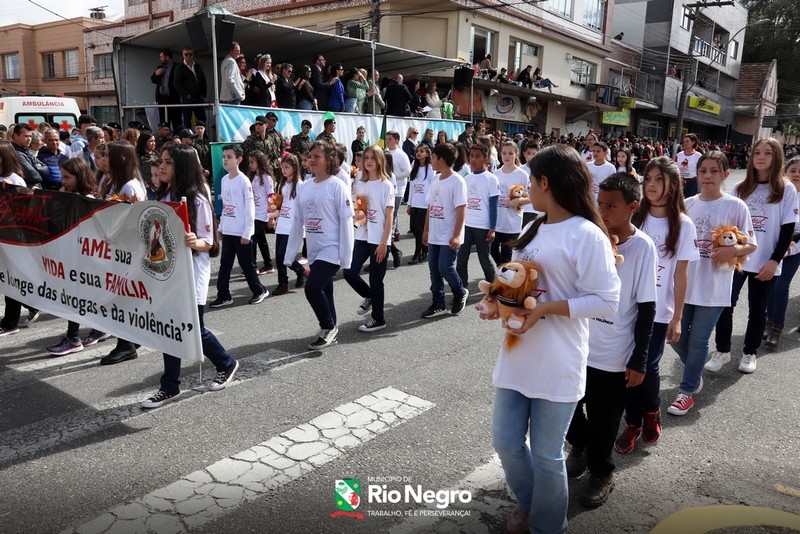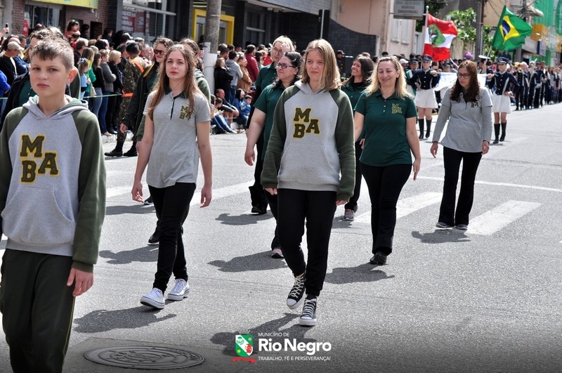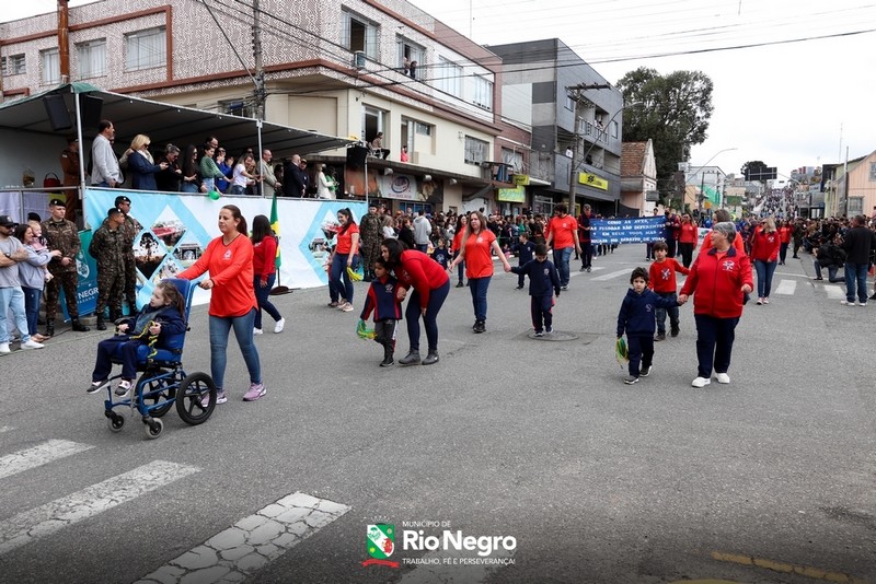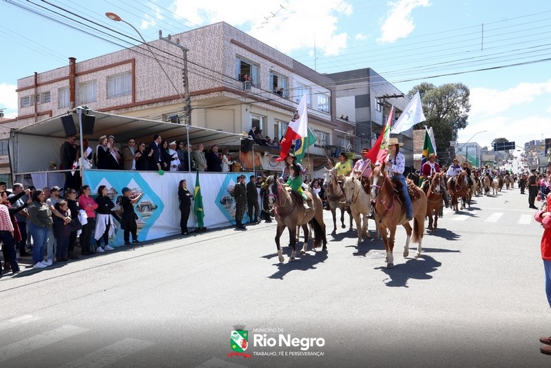 O desfile ocorreu na Rua Dr. Vicente Machado, em Rio Negro, com a participação de diversas escolas e entidades, inclusive de outros municÃpios da região. O evento foi organizado pela Prefeitura de Rio Negro, através da Secretaria Municipal de Educação e com o importante apoio do 5º Regimento de Carros de Combate.