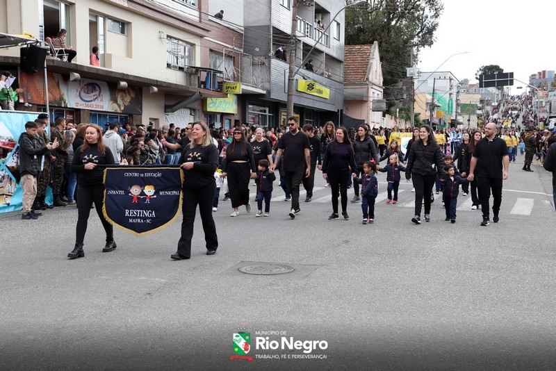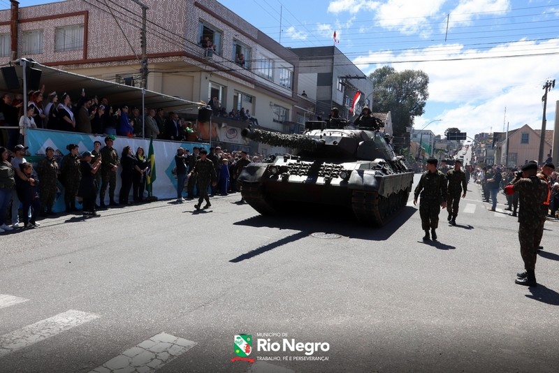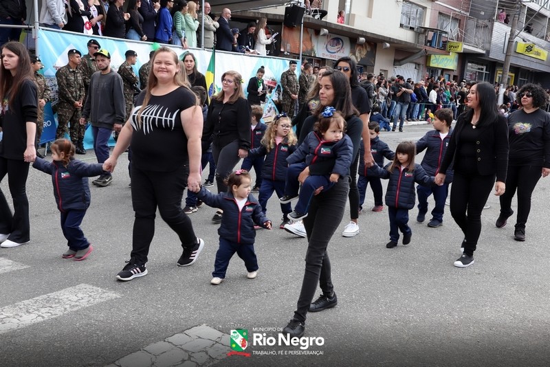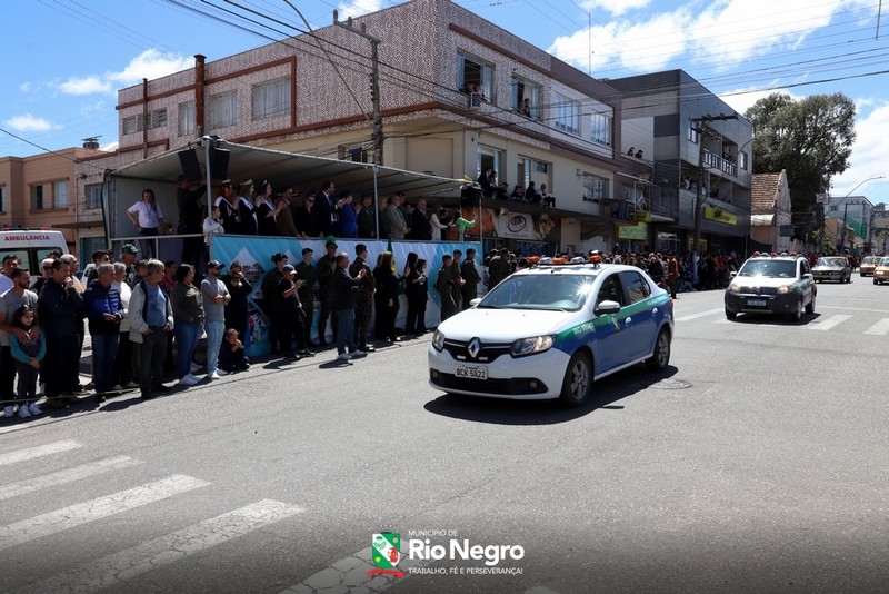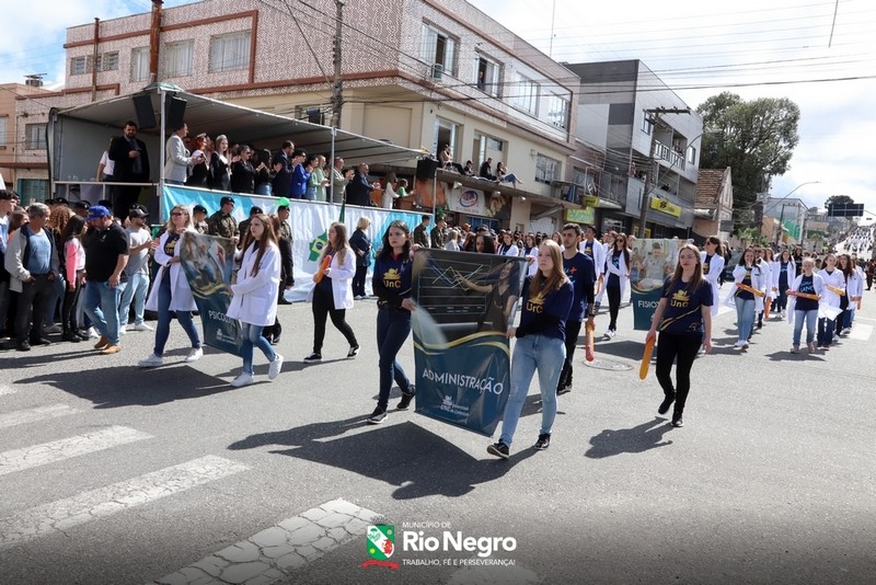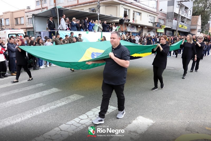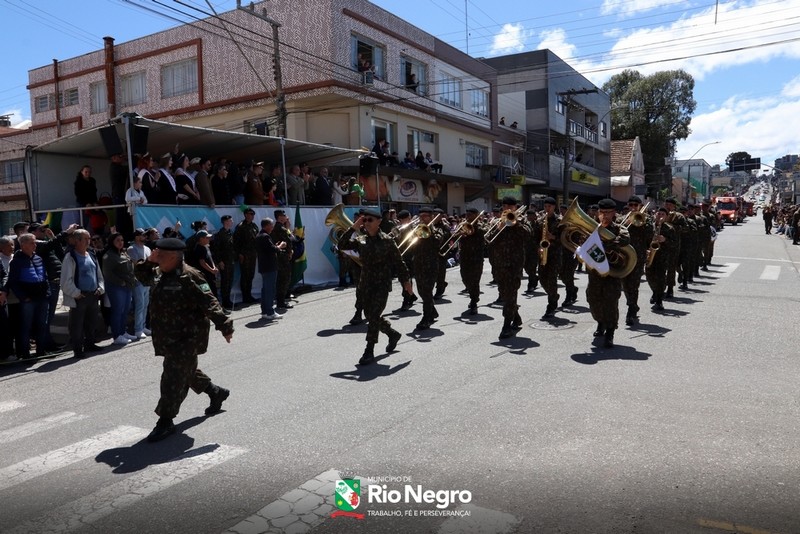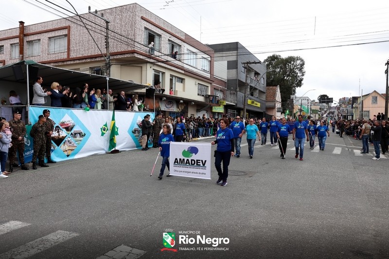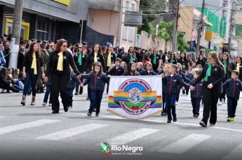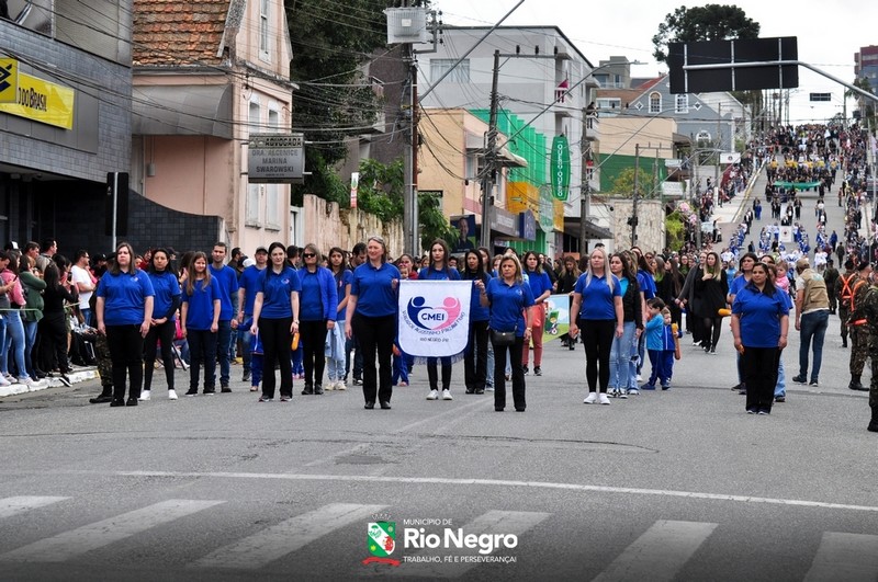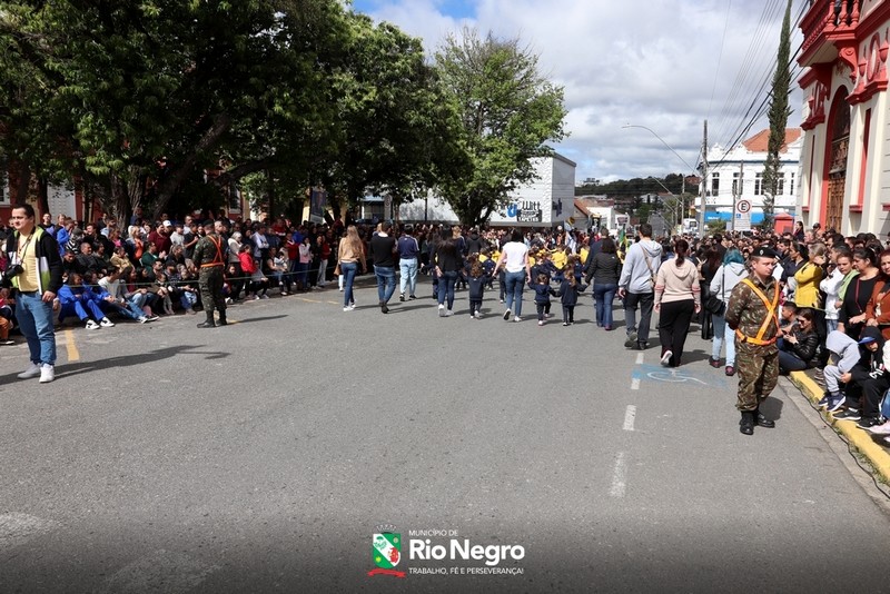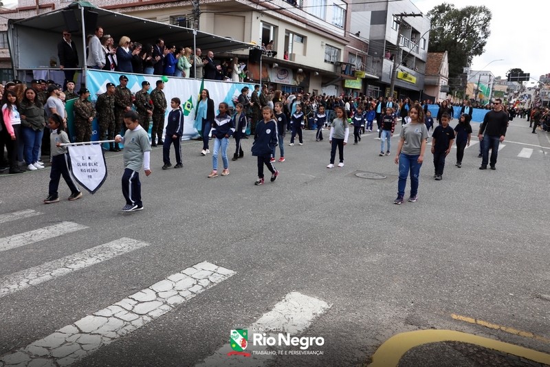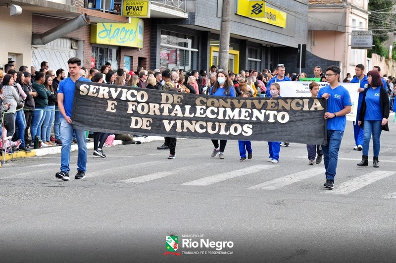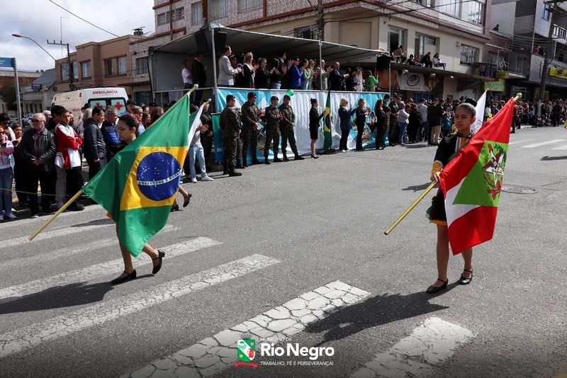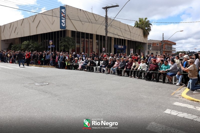 O desfile ocorreu na Rua Dr. Vicente Machado, em Rio Negro, com a participação de diversas escolas e entidades, inclusive de outros municÃpios da região. O evento foi organizado pela Prefeitura de Rio Negro, através da Secretaria Municipal de Educação e com o importante apoio do 5º Regimento de Carros de Combate.