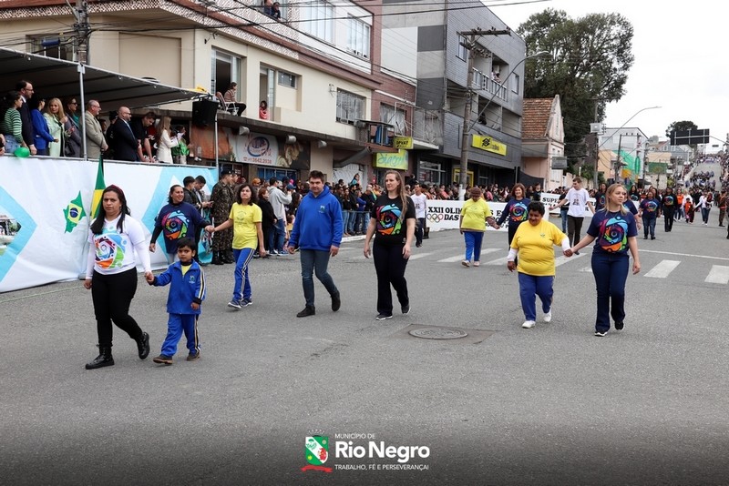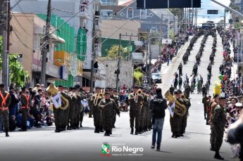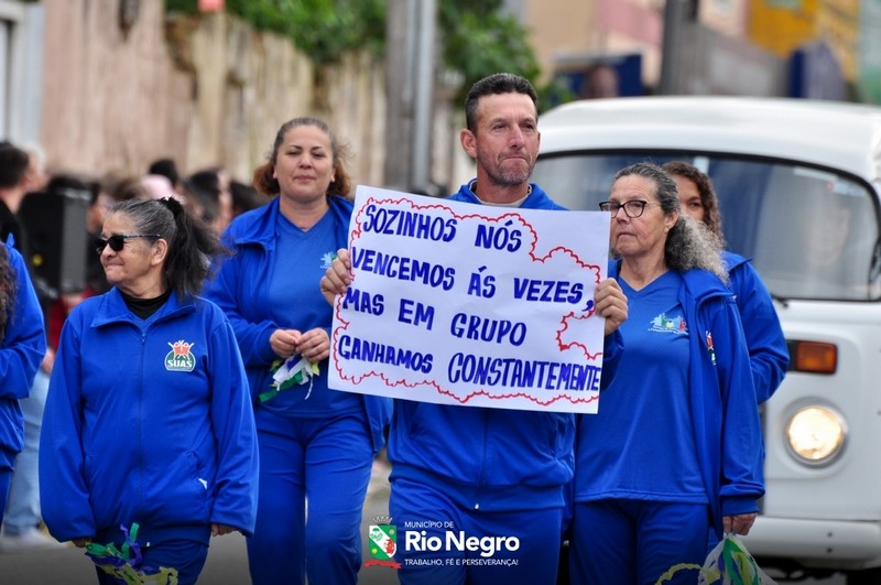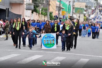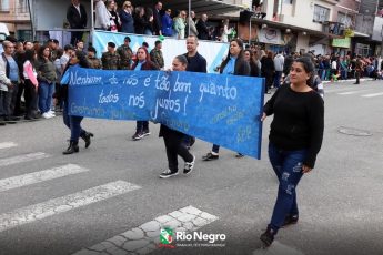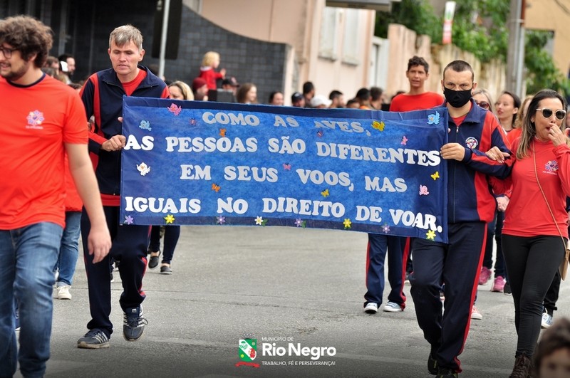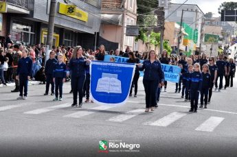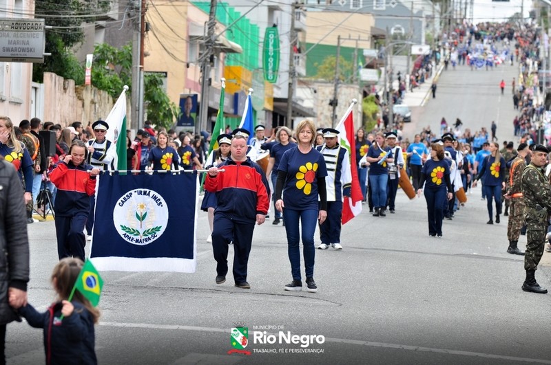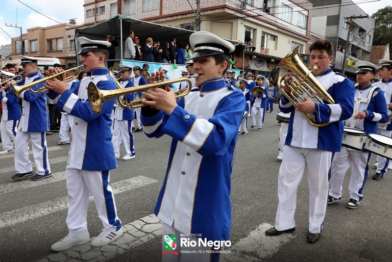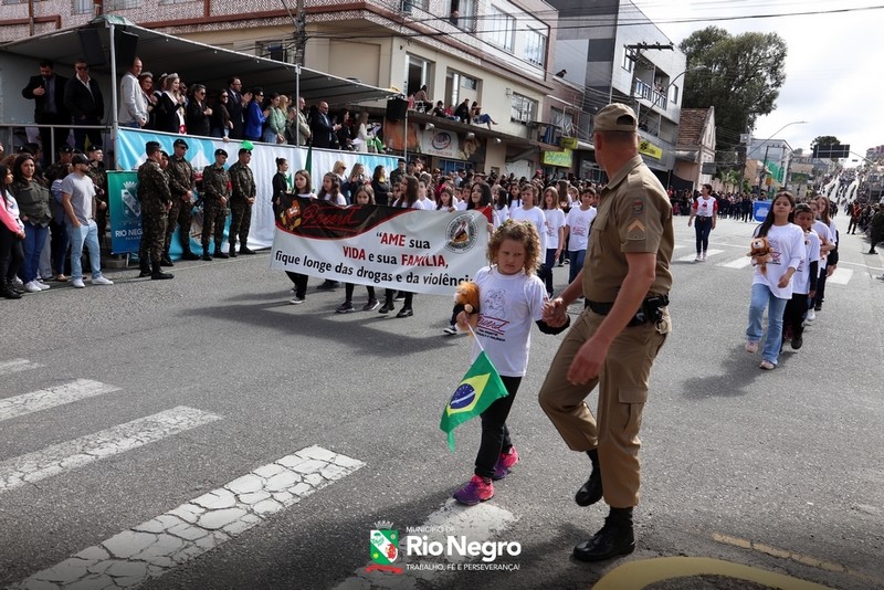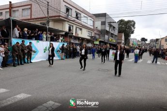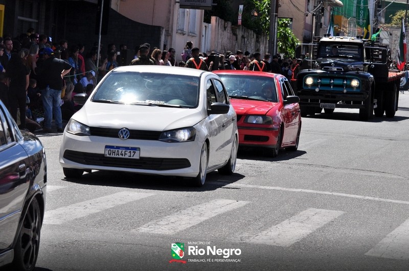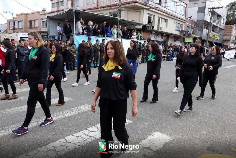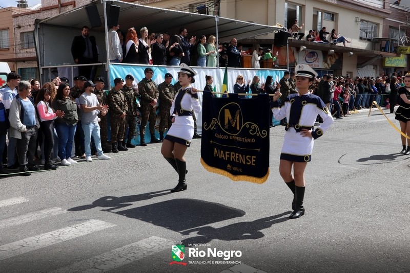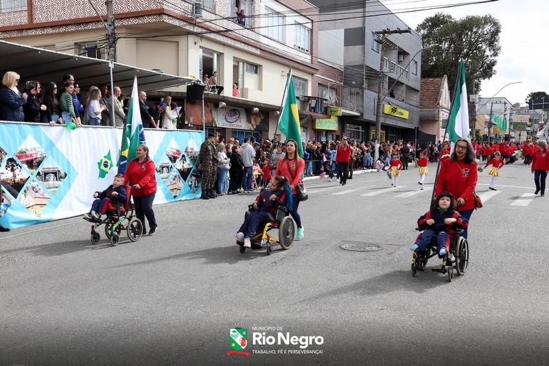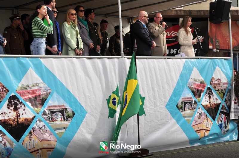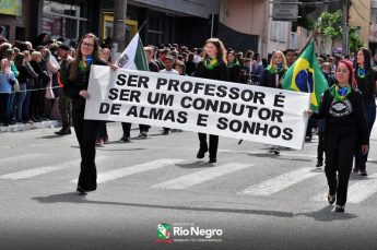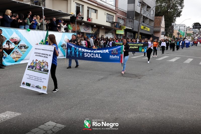 O desfile ocorreu na Rua Dr. Vicente Machado, em Rio Negro, com a participação de diversas escolas e entidades, inclusive de outros municÃpios da região. O evento foi organizado pela Prefeitura de Rio Negro, através da Secretaria Municipal de Educação e com o importante apoio do 5º Regimento de Carros de Combate.