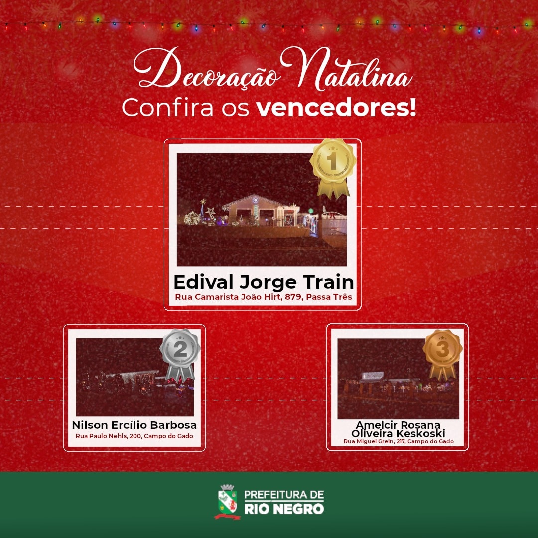 Nesta terça-feira foram divulgados os vencedores do Concurso de Decoração Natalina 2020 de Rio Negro. Confira o resultado: