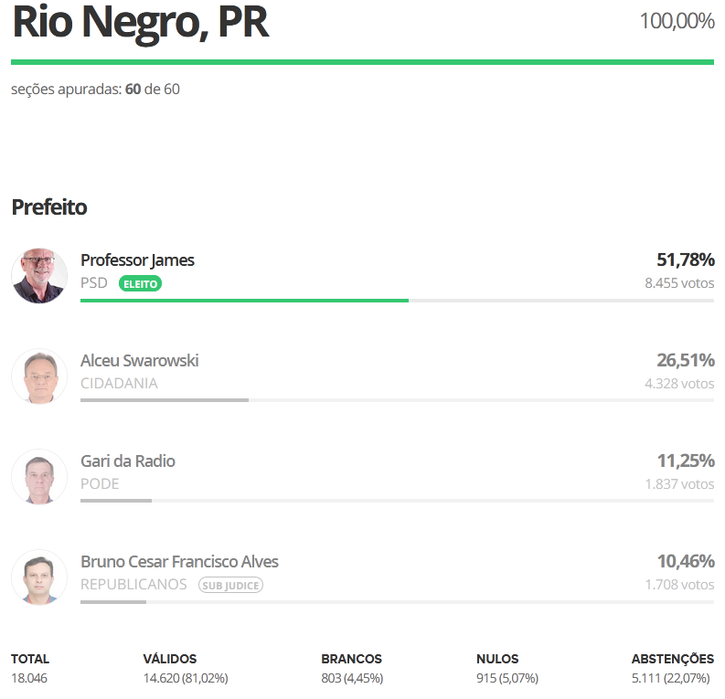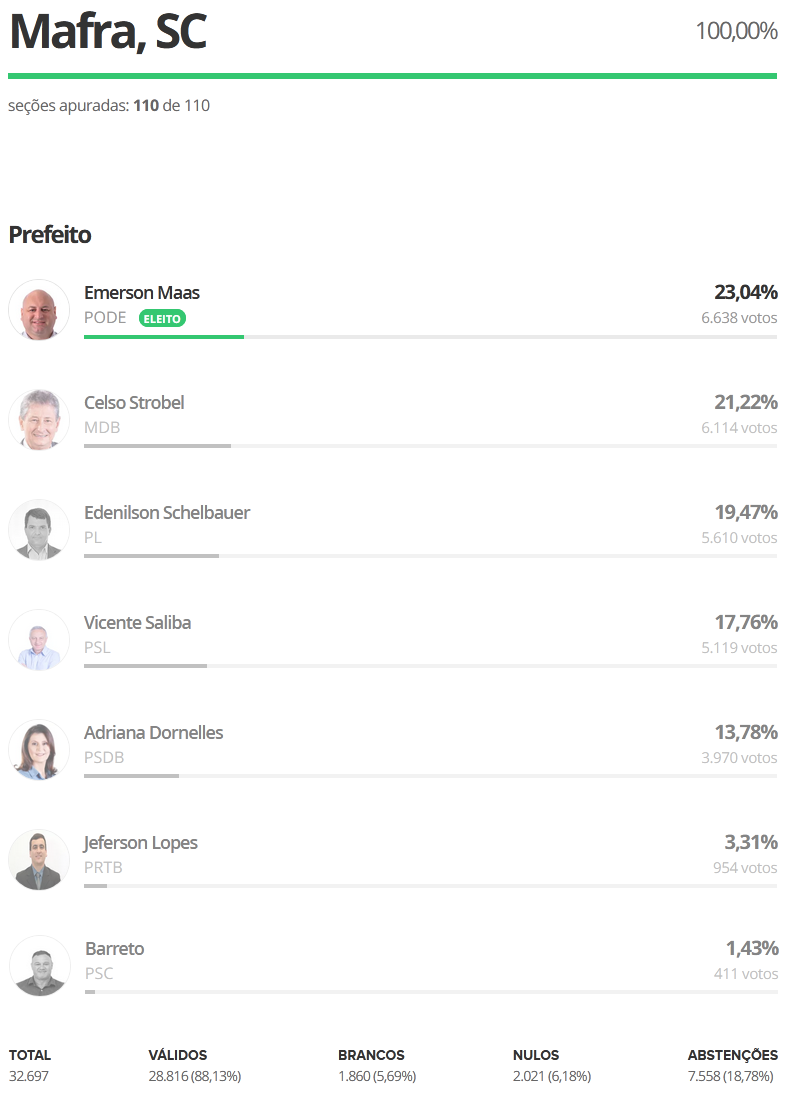 Com 100% das urnas apuradas, Rio Negro, Mafra e região já possuem os nomes dos eleitos.