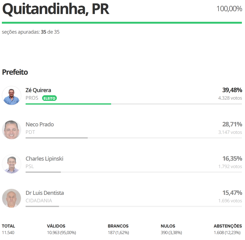 • Paulão do Quicé (CIDADANIA): 251 votos
