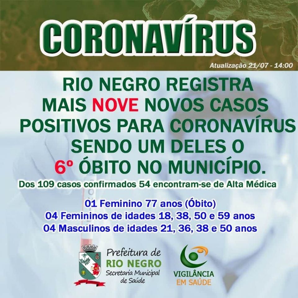 LEIA TAMBÉM: Boletins atualizados sobre o coronavírus em Rio Negro e Mafra
