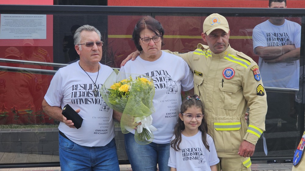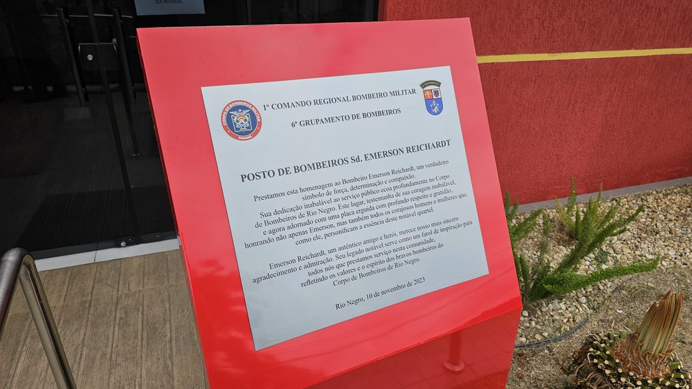 Na manhã desta sexta-feira (10), foi realizada uma emocionante cerimônia na unidade do Corpo de Bombeiros de Rio Negro, que a partir de hoje passa a ser denominada “Posto de Bombeiro Soldado Emerson Reichardt”.