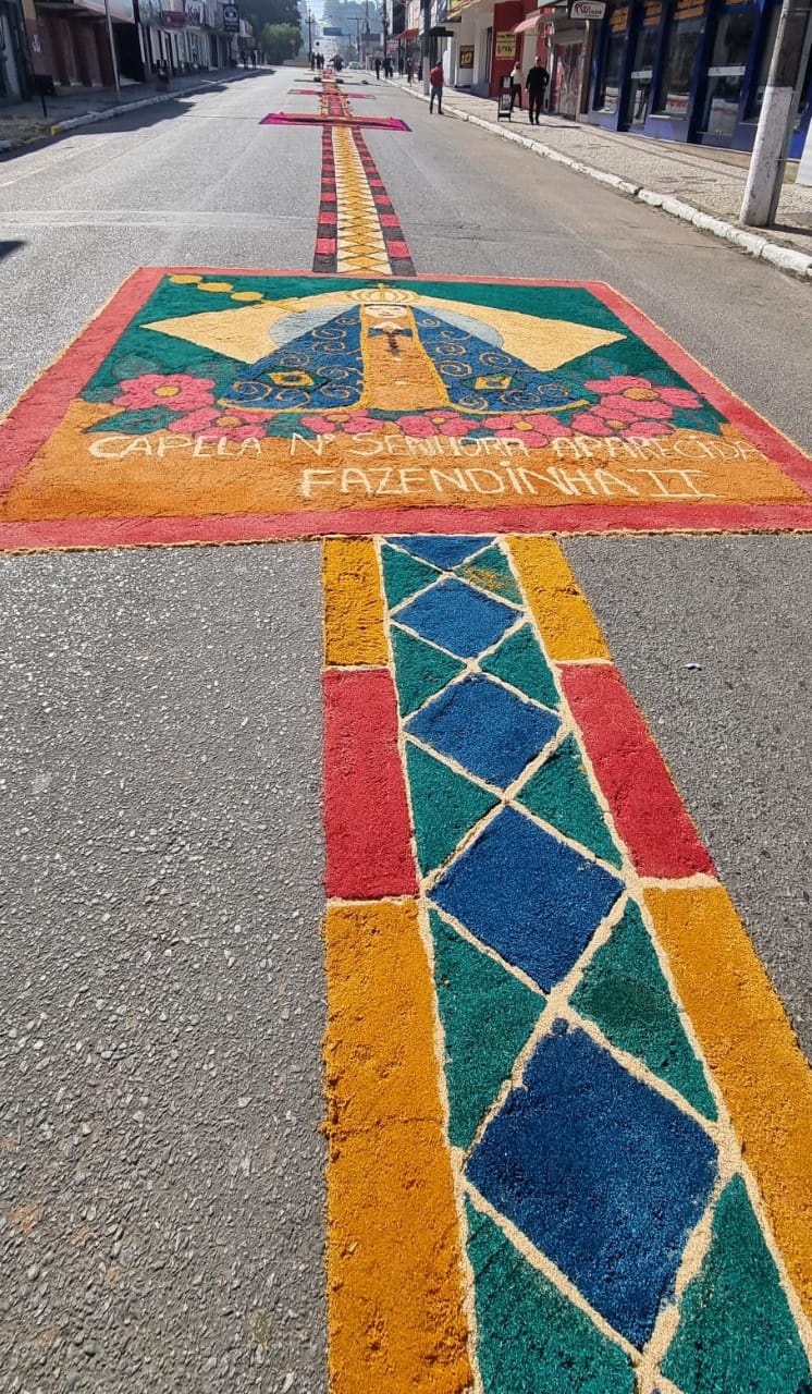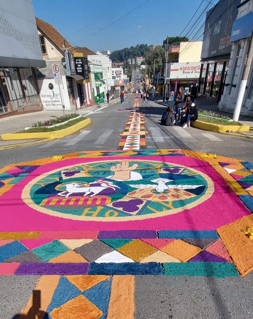 Hoje é celebrado o Corpus Christi e os lindos tapetes coloriram Rio Negro. 🙏💚 As belas fotos feitas por Ira Martins mostram os tradicionais tapetes de pó de serragem feitos pelos fieis da Paróquia Senhor Bom Jesus da Coluna de Rio Negro.