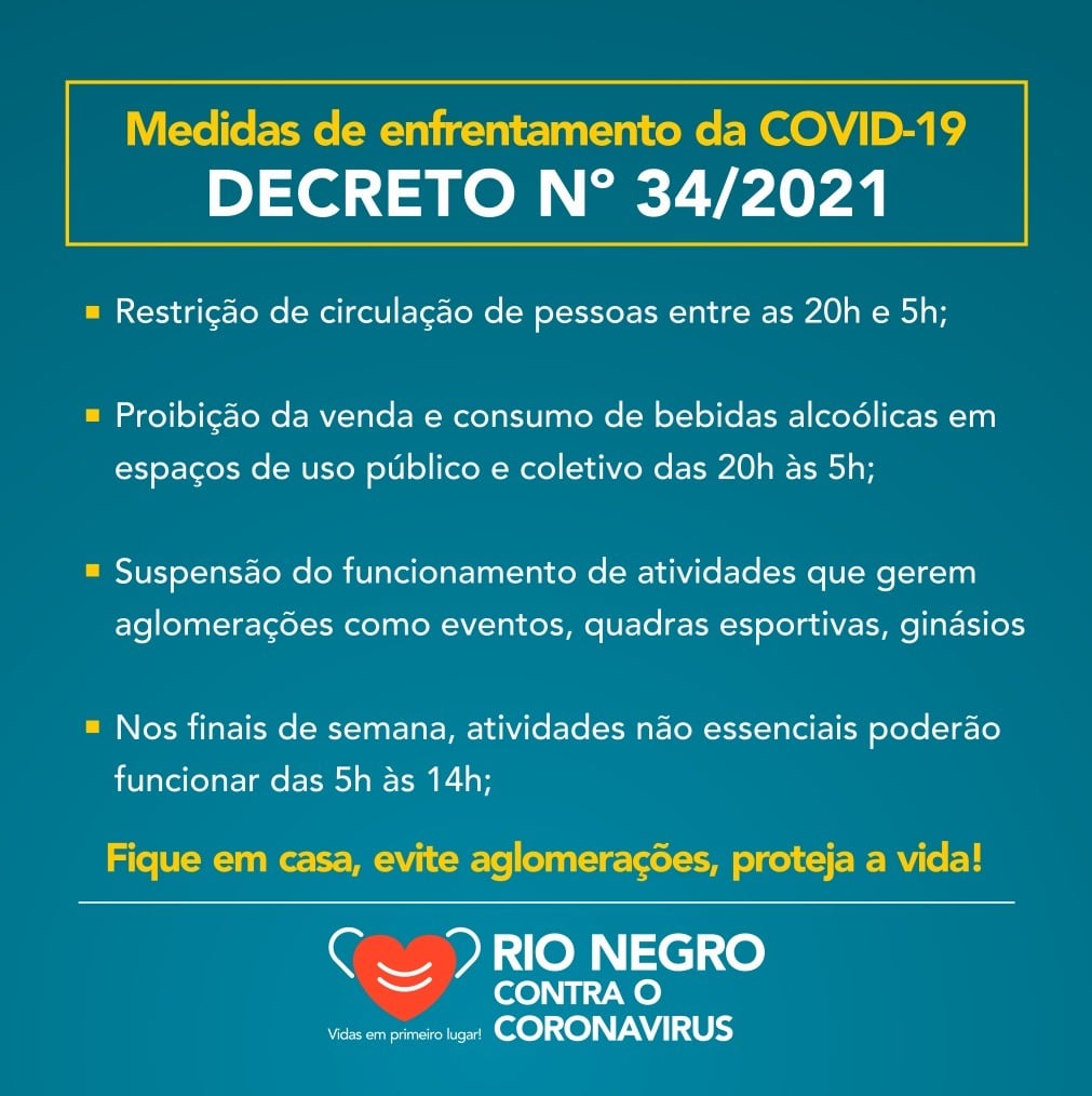 Considerando a realidade local e densidade demográfica de Rio Negro, município com menos de cinquenta mil habitantes, Decreto Estadual nº 7122, de 16 de março de 2021;