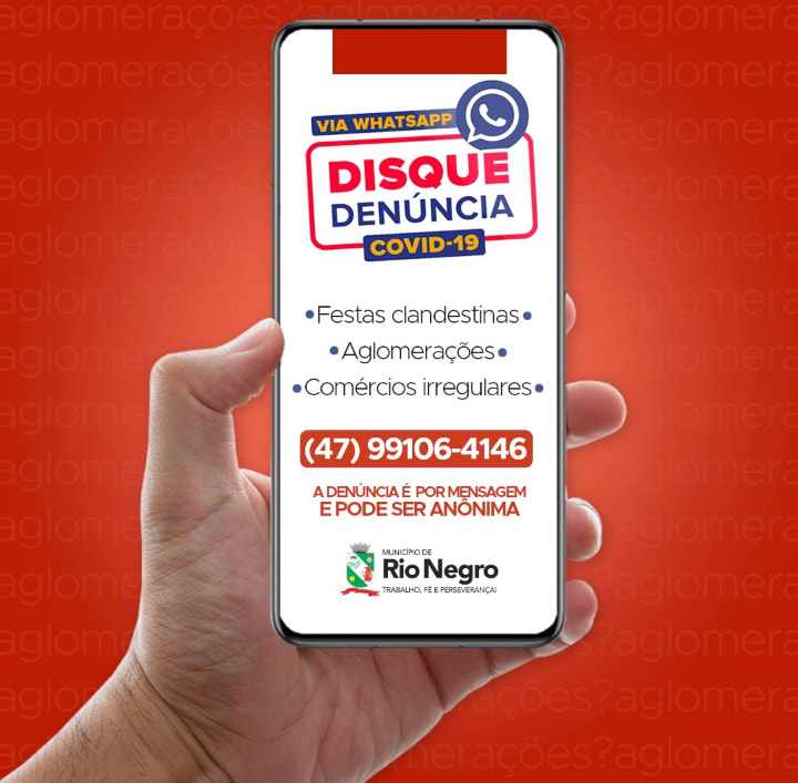 A Prefeitura de Rio Negro divulgou neste sábado o número de WhatsApp para o envio de denúncias de aglomerações. festas clandestinas e comércios irregulares.
