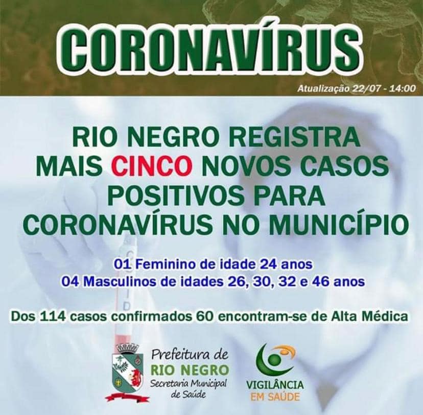 Rio Negro chego ao 114º caso positivo de coronavírus nesta quarta-feira. 60 pessoas estão recuperadas.