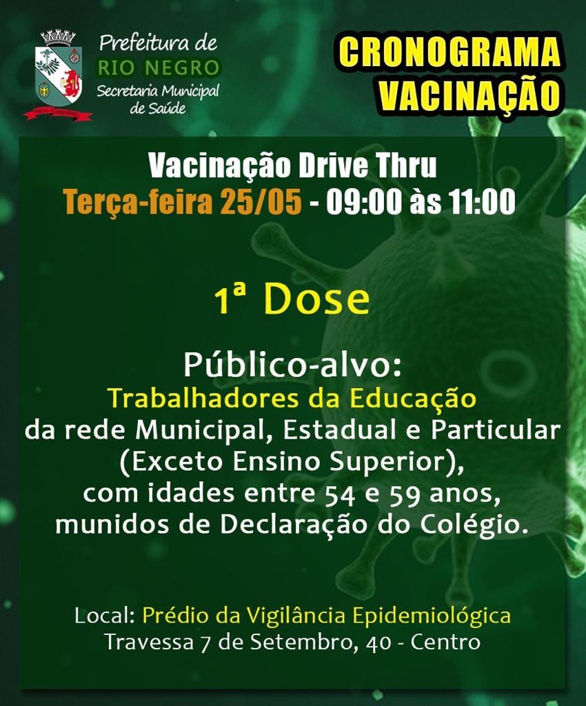 Nesta terça-feira (25) a vacinação contra a Covid-19 em Rio Negro está sendo aplicada nos trabalhadores da educação.