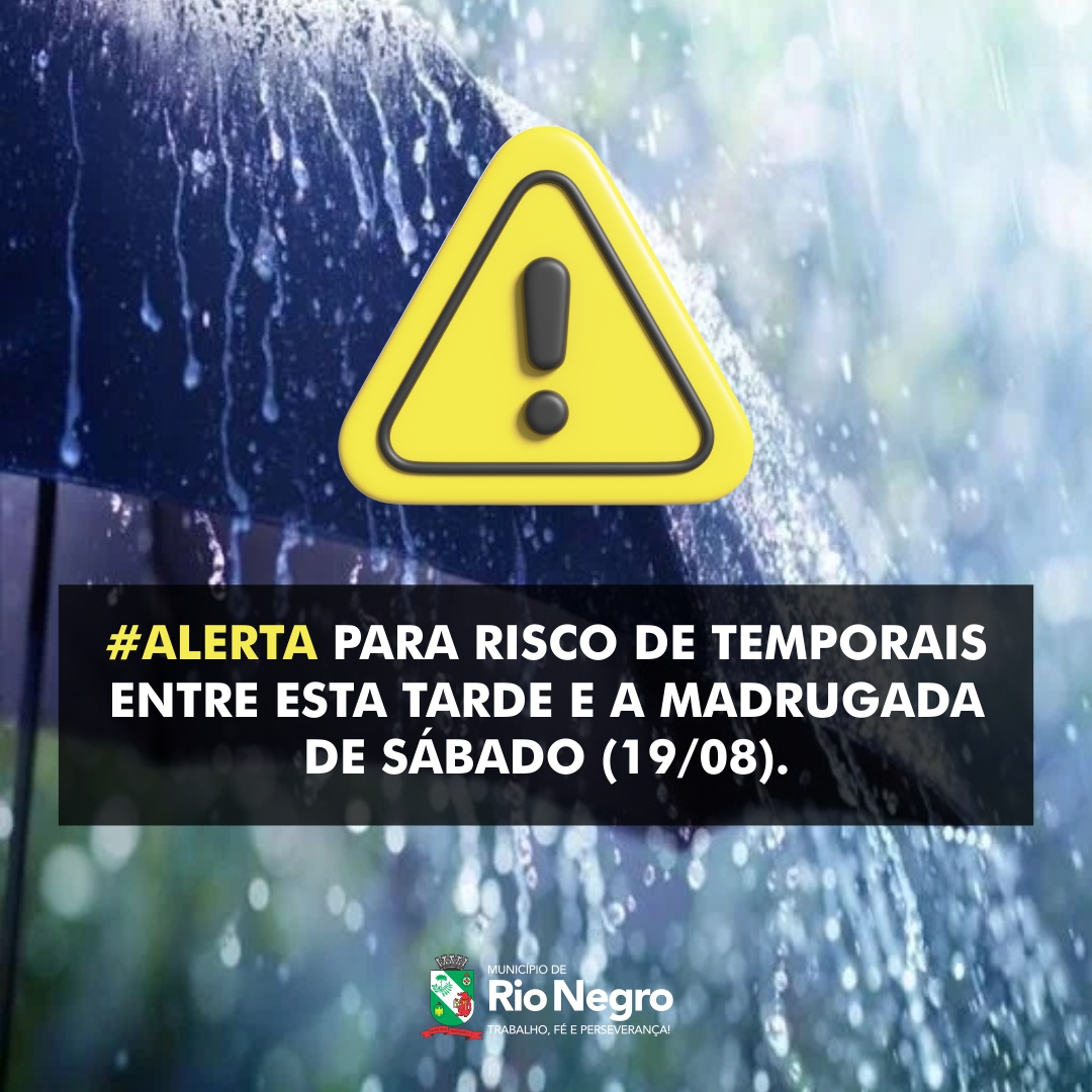 ⚠️⛈️ Defesa Civil #alerta para risco de temporais entre esta tarde e a madrugada de sábado (19/08).