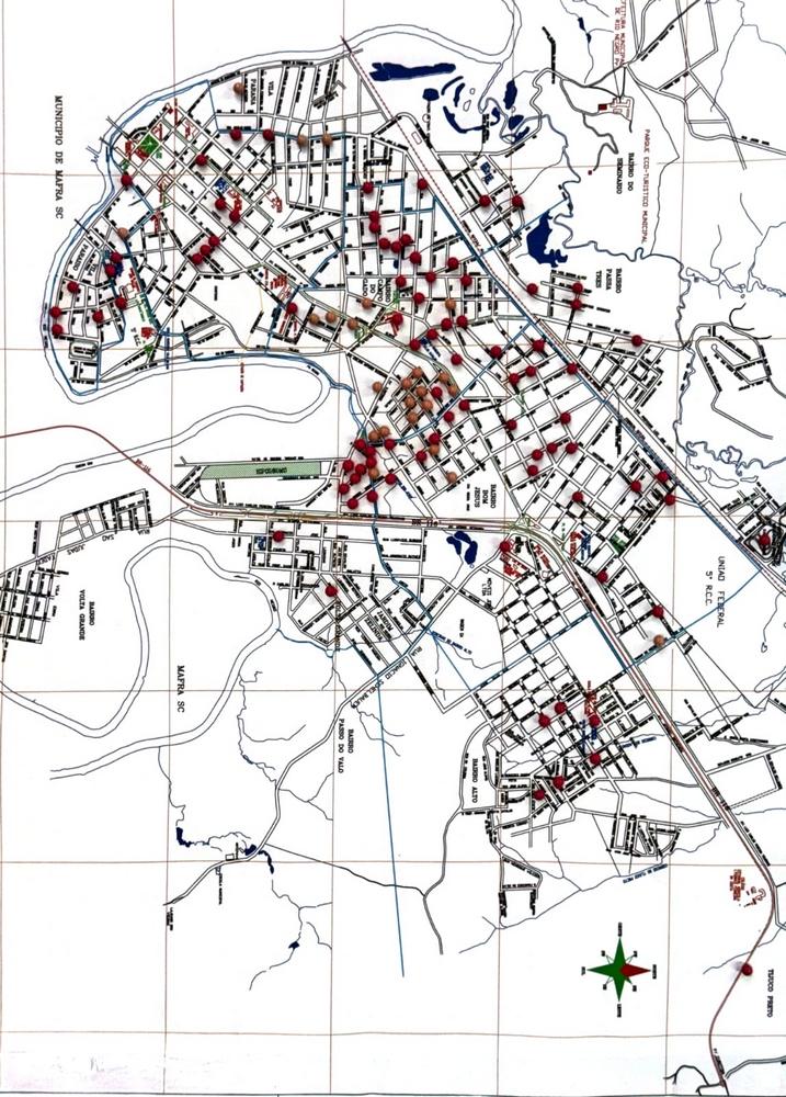 A análise espacial aponta que a infestação por Aedes aegypti não ocorre de forma uniforme na cidade. Foi identificada uma concentração significativamente maior de focos nos seguintes bairros: Bom Jesus, Campo do Gado e Volta Grande.