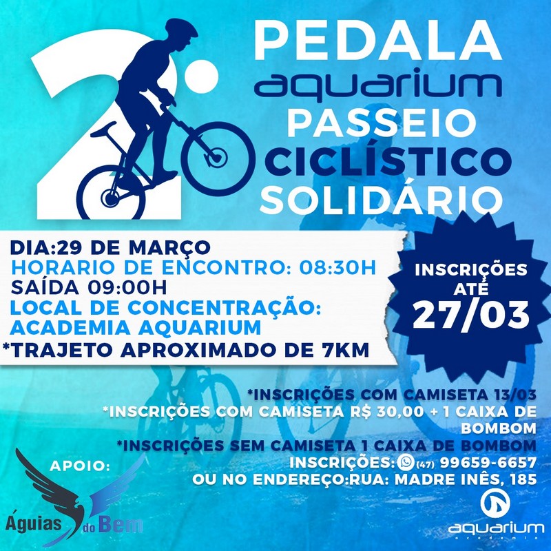 A Campanha de Páscoa está a todo vapor com novos parceiros. A Academia Aquarium de Mafra está promovendo o 2° Pedala Solidário, que será realizado no dia 29/03. As inscrições podem ser realizadas até o dia 27. Este evento será em prol da campanha de Páscoa, onde as inscrições serão feitas com a doação de uma caixa de bombom.