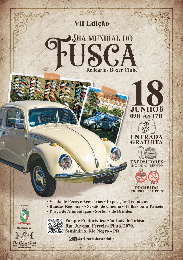 Neste domingo será realizado o tradicional evento em celebração ao Dia Mundial do Fusca em Rio Negro.