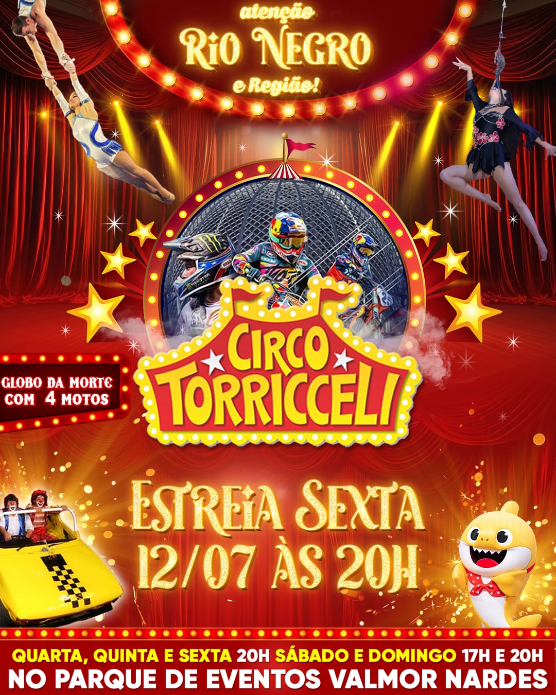 Circo Torricceli está em Rio Negro! ❤️ Estreia sexta-feira às 20h no Parque de Eventos de Rio Negro (bairro Volta Grande). Divirta-se com a sua família e amigos com um dos maiores circos do Brasil. Sábado e domingo: 17h e 20h. Quarta, quinta e sexta-feira: 20h.