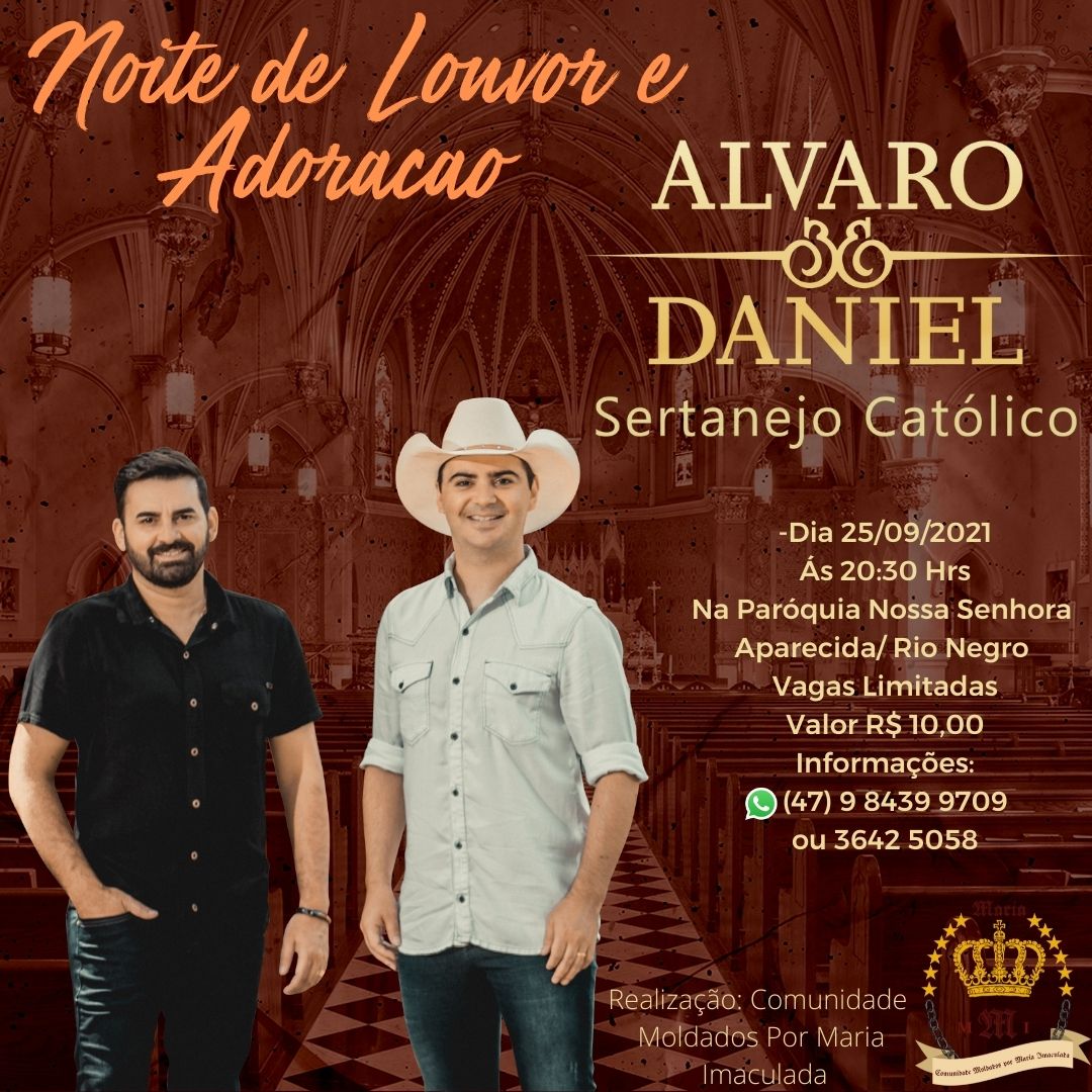 Rio Negro terá uma noite de louvor e adoração com Alvaro & Daniel, dupla que faz sucesso no sertanejo católico. O evento será no dia 25 de setembro às 20h30 na Paróquia Nossa Senhora Aparecida, no bairro Bom Jesus.