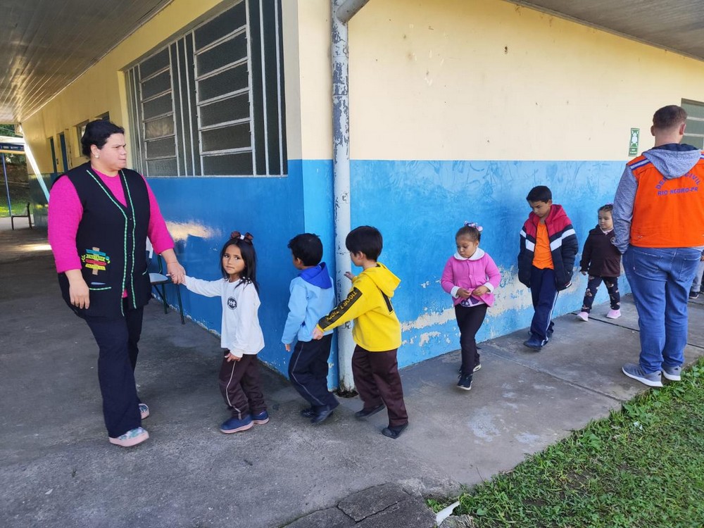 Os treinamentos estão sendo realizados e acompanhados por servidores da Secretaria de Educação, membros da Defesa Civil e militares do Corpo de Bombeiros.