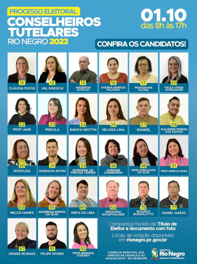 O voto é sigiloso e facultativo. Cidadãos maiores de 16 anos sem nenhuma irregularidade no TÃtulo de Eleitor podem votar na eleição. Em Rio Negro são 27 candidatos.