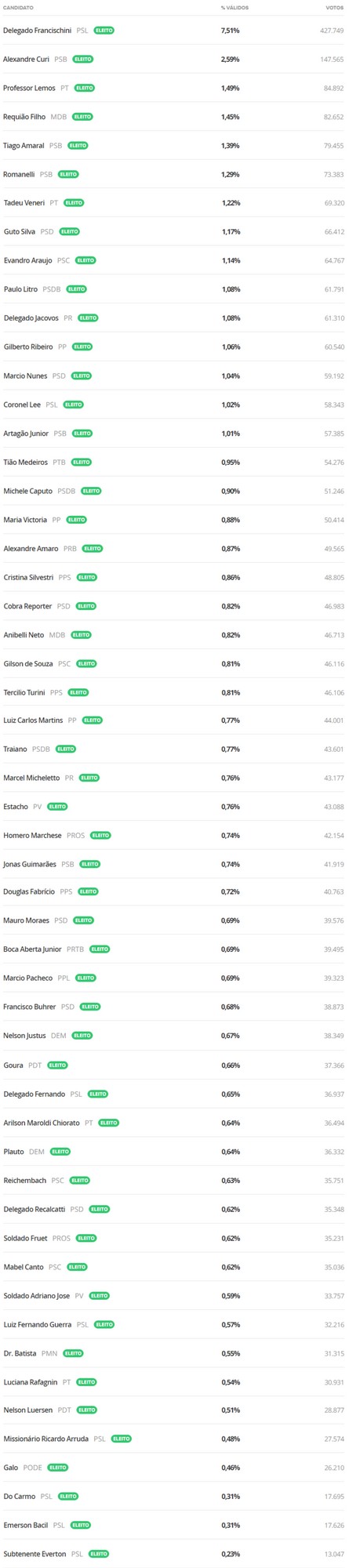O candidato rionegrense Robinson Feres (PSL) obteve 2.481 votos (0,04%), não conseguindo se eleger.