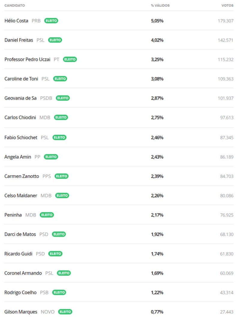 Mafra não conseguiu eleger um Deputado Estadual. Resultados dos candidatos mafrenses: