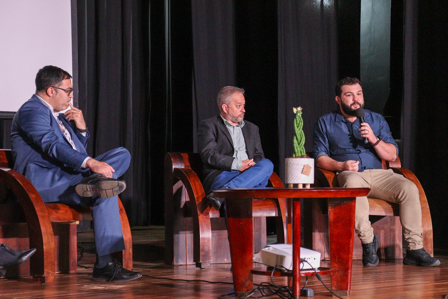 Participaram do talk: William Mazur, secretário de indústria e comércio de Rio Negro, representando o Poder Público, Antonio Carlos Tiburski, representando a classe empresarial, Simone Parnes, gerente comercial do Sistema FIEP, e Augusto Machado, do setor industrial do Sebrae na região. Durante o evento também foram apresentadas três startups.