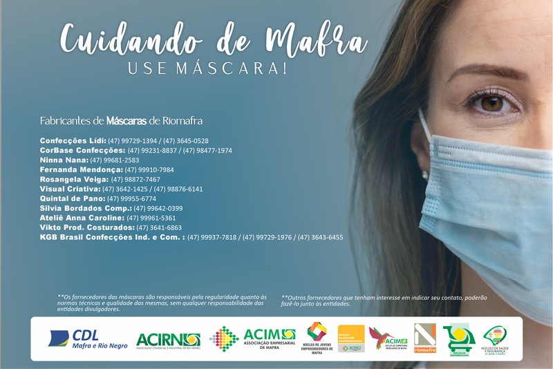 A ACI de Mafra, Núcleo Setoriais, CDL e ACIRN, com o intuito de incentivar a utilização deste meio de prevenção, mapearam empresas em Riomafra que produzem máscaras.