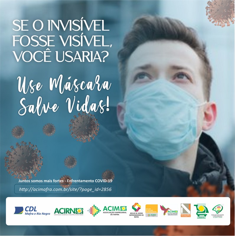 A ACI de Mafra, em parceria com os Núcleos Setoriais, CDL e ACIRN, lançaram na última quinta-feira (9) a campanha “Use máscara, salve vidas: se o invisível fosse visível, você usaria?” O intuito é incentivar a utilização de máscaras como forma de prevenção ao Covid-19.