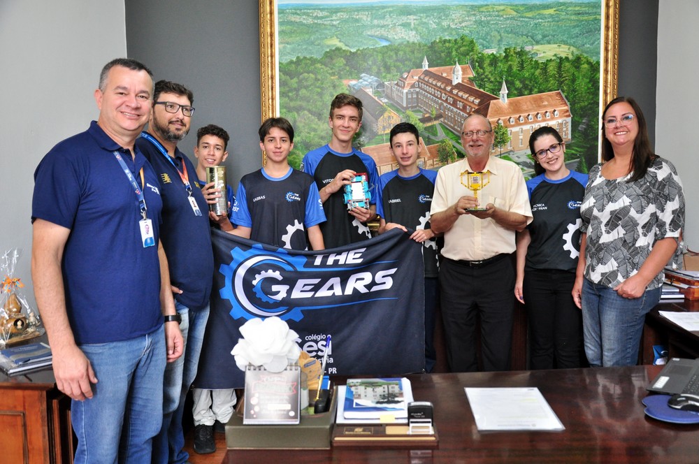 O prefeito James Karson Valério e a secretária de educação, Vera Pfeffer Schelbauer, receberam nesta segunda-feira a visita da equipe de robótica The Gears do Colégio Sesi de Rio Negro. Acompanhados do coordenador do colégio e dos técnicos, os alunos explanaram as conquistas recentes e as expectativas para as próximas competições da First Lego League (FLL).