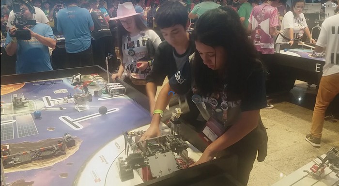 A prova de robótica envolve utilizar princípios de engenharia para criar e programar um robô que terá que cumprir várias tarefas e soluções ligadas ao tema selecionado para o ano.