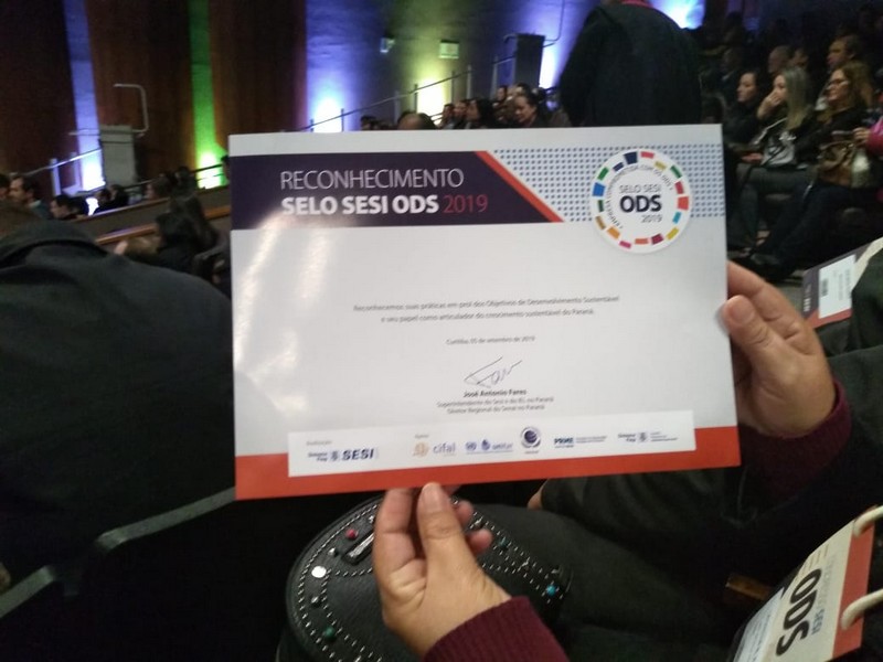 A entrega do prêmio foi na sede do Sistema Fiep em Curitiba, no último dia 5 (quinta-feira), durante o Congresso Sesi ODS, pelo reconhecimento do ‘Projeto Desperdício Zero e Alimentação Saudável’, desenvolvido pelo 4 ano B da professora Leonilda Rauen.