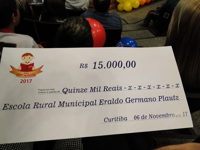 Participaram do Prêmio MPT na Escola 27 municípios, 475 escolas e cerca de 43.700 alunos. A Escola Eraldo Germano Plautz concorreu na categoria Esquete Teatral, sendo premiada com R$ 15.000,00 para utilização em melhorias na escola, além de proporcionar aos alunos que desenvolveram o projeto uma tarde muito divertida.