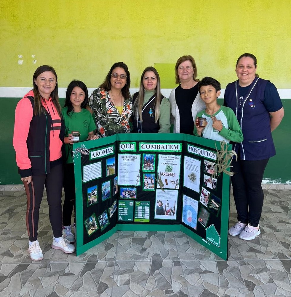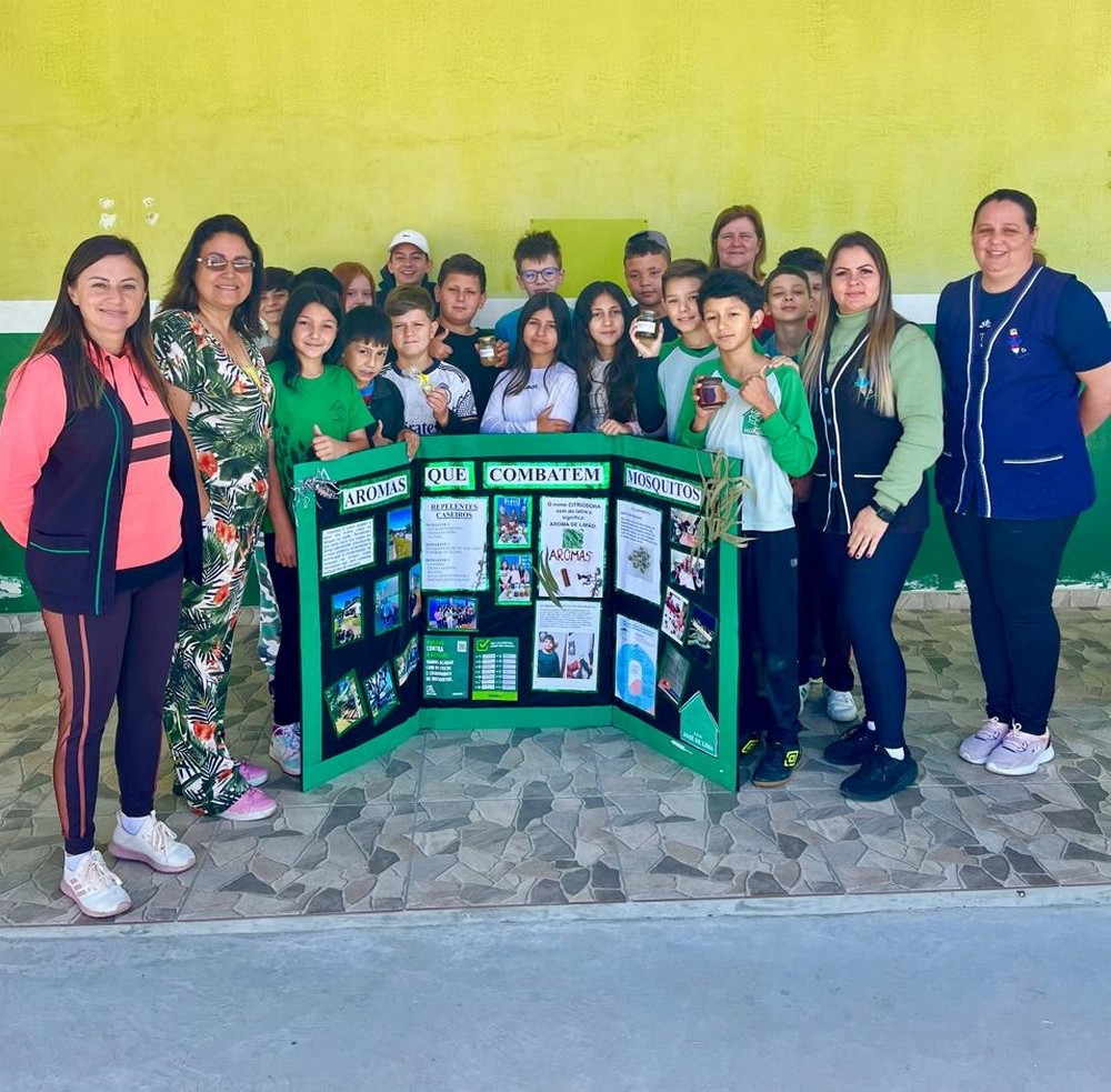 A secretária municipal de educação, Jussara do Rocio Heide e a coordenadora local Carla Kiatkoski visitaram a escola para parabenizar pessoalmente os alunos e suas professoras pelo excelente resultado, onde o técnico da Afubra, Edemar, trouxe a notícia ainda mais empolgante: o projeto “Aromas que Combatem Mosquitos” foi selecionado para participar da Mostra Sul-Brasileira de 2025.
