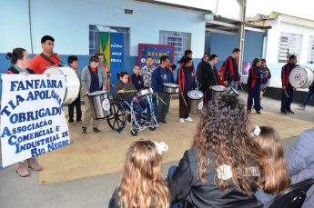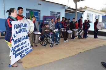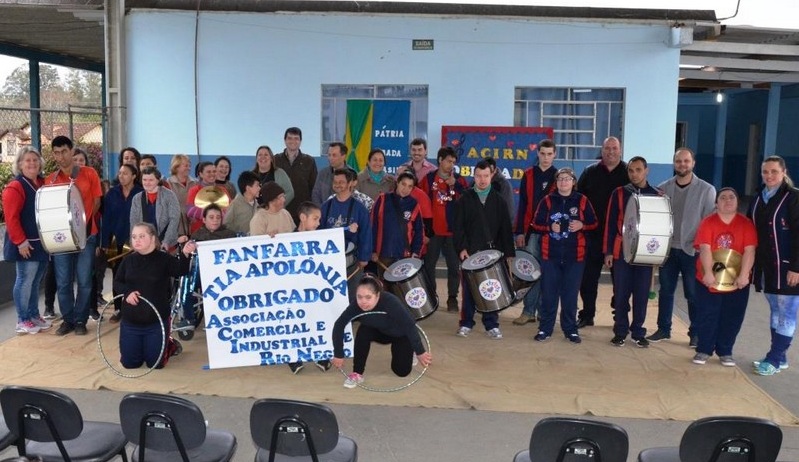 Fundada em 1976, a Escola Municipal Tia Apolônia atende atualmente 131 alunos de 0 a 50 anos, distribuídos nos programas de Educação Infantil, Ensino Fundamental e Educação Profissional e conta com 33 funcionários especializados entre professoras especializadas, secretária, fisioterapeuta, fonoaudióloga, psicóloga, atendentes, serviços gerais, merendeira e motorista. Para a secretaria municipal de educação, Jussara Heide, são ações como a das empresas rionegrenses que estimulam os alunos a persistirem no desenvolvimento de habilidades. Ela parabenizou toda a equipe da escola pelas atividades realizadas e os empreendedores pela ação voluntária. “É muito gratificante poder ver as crianças levando adiante o seu projeto de desenvolvimento. Eles não desistem porque tem parceiros como vocês”, destacou. A próxima apresentação da fanfarra da Escola Tia Apolônia será no desfile cívico de 7 de setembro.
