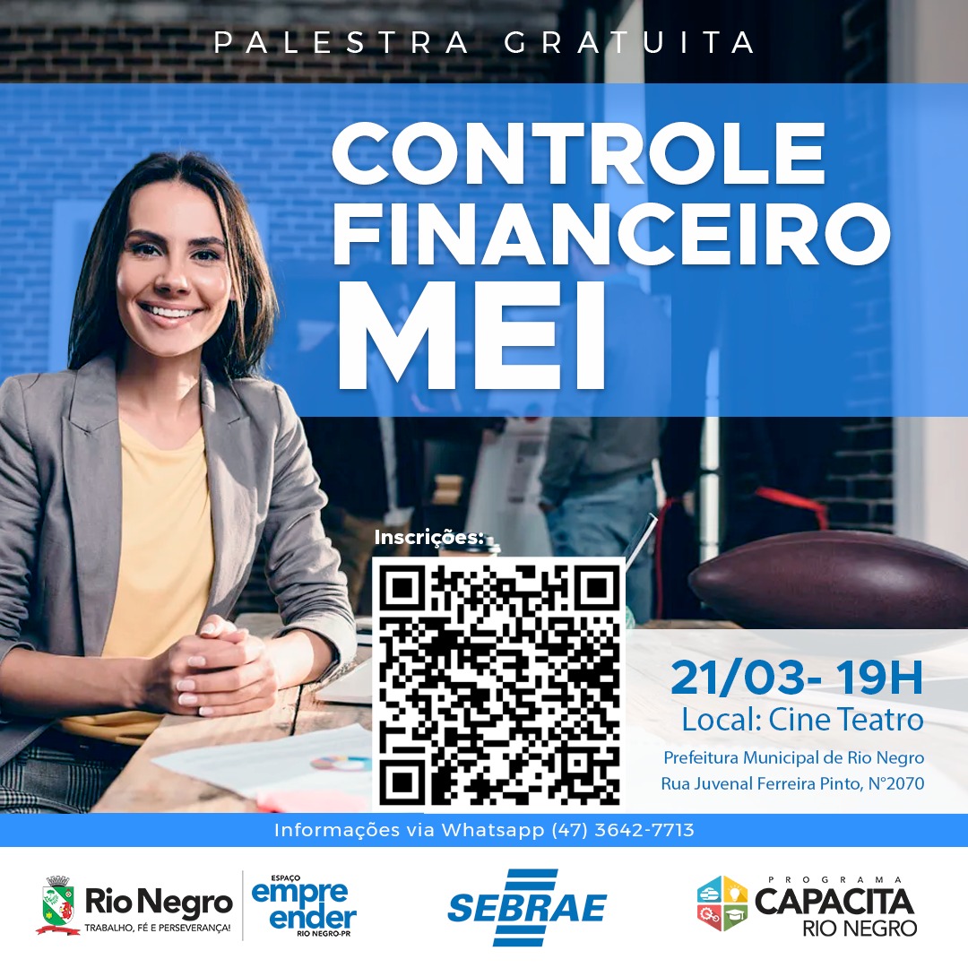 O Espaço Empreender da Prefeitura de Rio Negro, em parceria com o Sebrae Paraná, promove gratuitamente a palestra “Controle Financeiro MEI” com certificado de participação incluso.