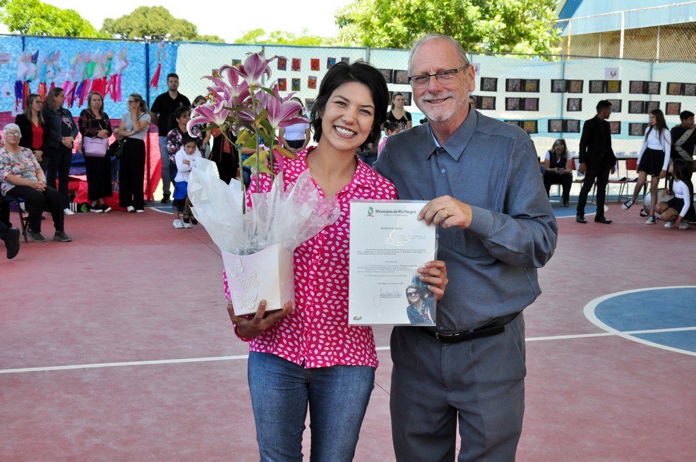 Na manhã desta sexta-feira (18), aconteceu na Escola Municipal João da Silva Machado a inauguração do Espaço Esportivo Professora Cirlei Brunnquell. O momento foi um importante e emocionante marco para a comunidade escolar, bem como para os familiares da Professora Cirlei, que puderam honrar e relembrar sua grande contribuição para a Educação de Rio Negro.