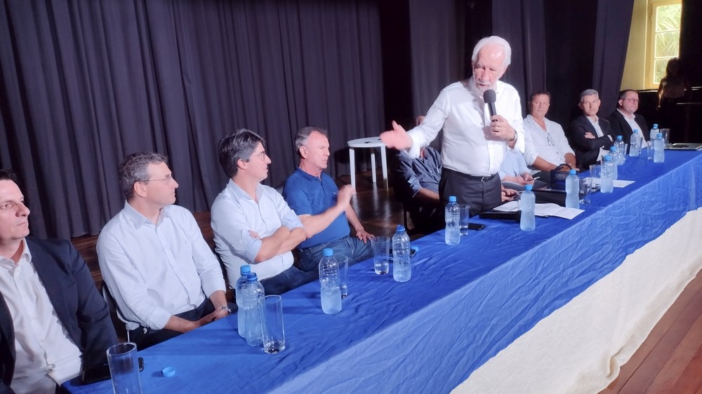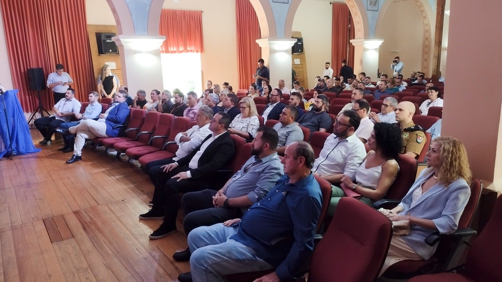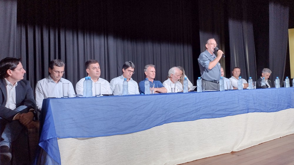 Na tarde desta quinta-feira (16), ocorreu no Cine Teatro Antonio Cândido do Amaral, na Prefeitura de Rio Negro, a reunião periódica da Associação dos Municípios da Região Suleste do Paraná (AMSULEP). O evento reuniu autoridades locais, estaduais e federais. Todos foram recepcionados pelo prefeito de Rio Negro, James Karson Valério, e pelo vice-prefeito, Alessandro von Linsingen.