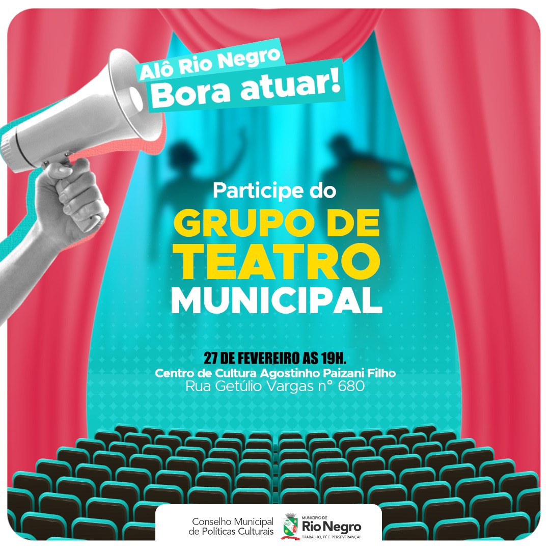 As atividades e ensaios do Grupo Municipal de Teatro de Rio Negro retornam no próximo dia 27 de fevereiro. Se você deseja atuar, conhecer mais sobre essa arte e fazer parte desse grupo incrÃvel, essa é a oportunidade.