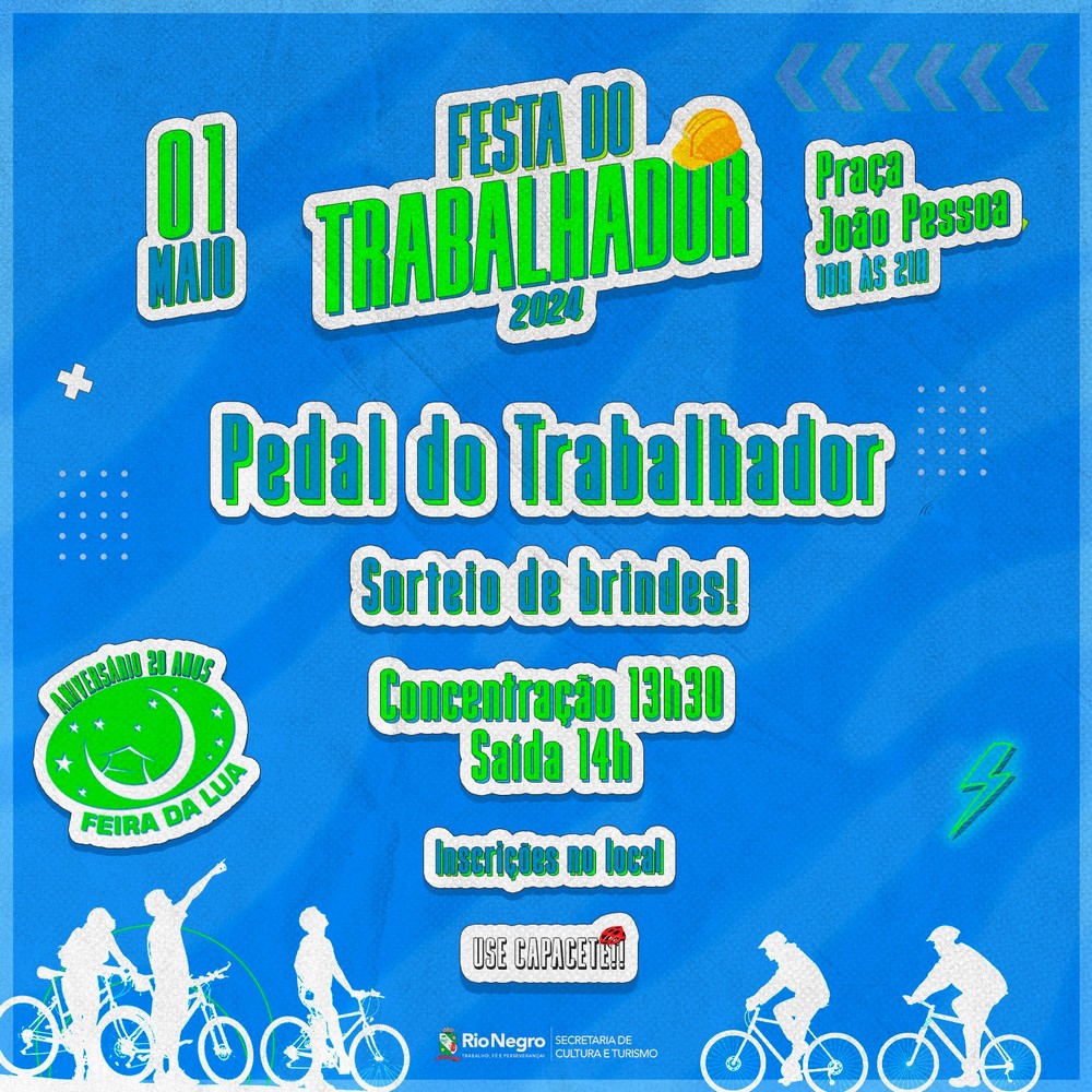 Neste dia também acontece o Pedal do Trabalhador, com participação gratuita. Será um trajeto leve, de aproximadamente 5 km para toda a família. A concentração inicia às 13h30 com largada prevista para 14h.