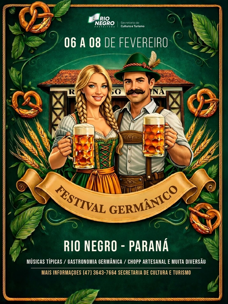 O Festival Germânico de Rio Negro terá início nesta sexta-feira com uma grande programação que visa valorizar a tradição e a cultura das origens da nossa cidade. A realização é da Prefeitura Municipal, através da Secretaria de Cultura e Turismo.