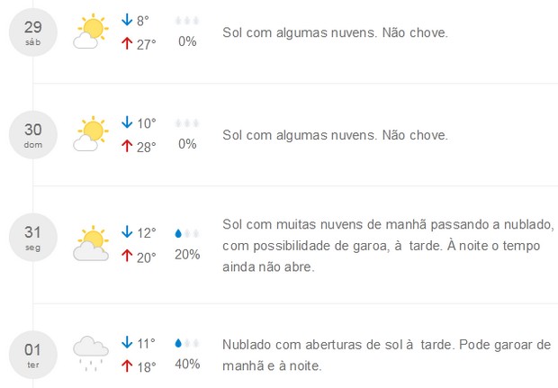 Uma boa notÃcia para quem gosta do calor: o final de semana em Rio Negro e Mafra será quente! A temperatura máxima chegará aos 28 graus de acordo com o site Climatempo. Não há previsão de chuva. Confira a previsão para os próximos dias: