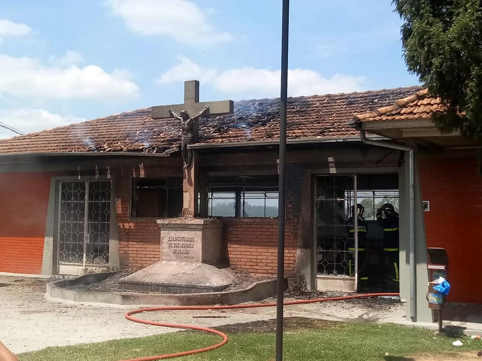 Fogo atinge a Capela Mortuária do Cemitério de Rio Negro neste sábado (02). O Corpo de Bombeiros foi acionado e controlou a situação. A causa provável do incêndio são velas que foram acesas no cruzeiro neste dia de Finados. Ninguém ficou ferido.