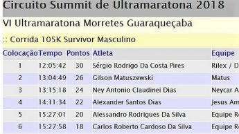 A prova foi muito dura e difÃcil, com um percurso irregular e com muitas pedras soltas e subidas fortes. Participei na categoria “sobrevivente”, que consiste em o atleta ser autossuficiente em hidratação e alimentação em grande parte do percurso. Em provas desta distância, somente o fato de completar o percurso longo e desafiador já é uma vitória, então eu somente pensava em terminar a prova respeitando minhas limitações fÃsicas, não me importando com a colocação dos outros corredores, até porque logo na largada os competidores abriram uma larga distância sobre mim. Realmente fiquei surpreso com a primeira colocação. O tempo total que realizei a prova foi de 12 horas e 05 minutos, ininterruptos.