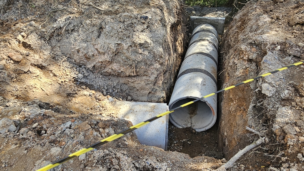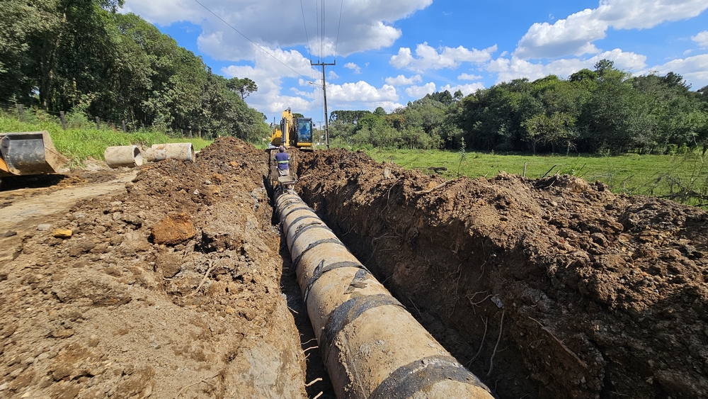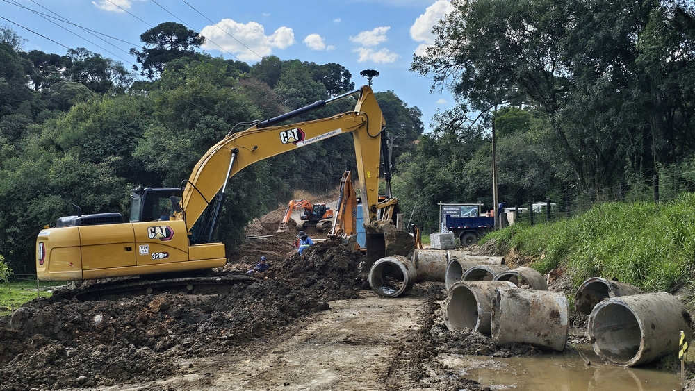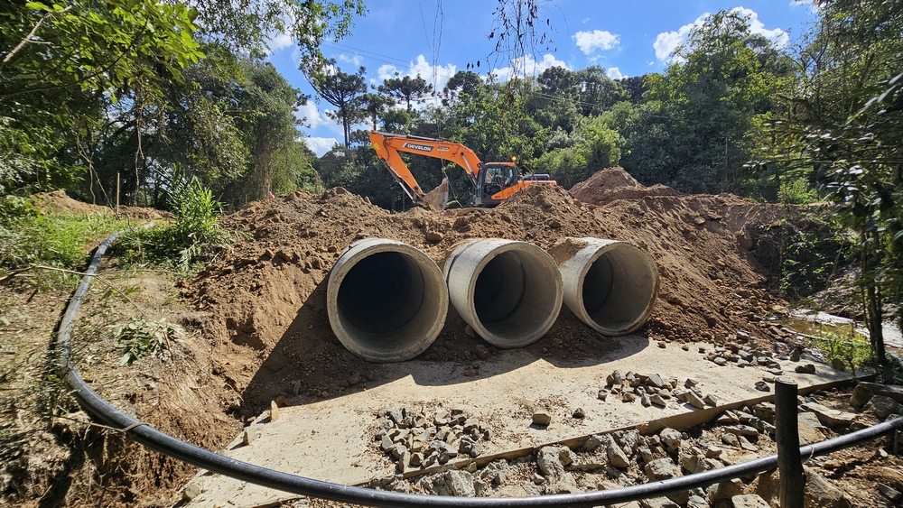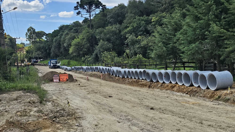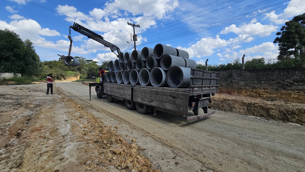 A etapa atual da obra é referente aos serviços de drenagem. É um serviço preliminar de grande importância para toda a estrutura da pavimentação.